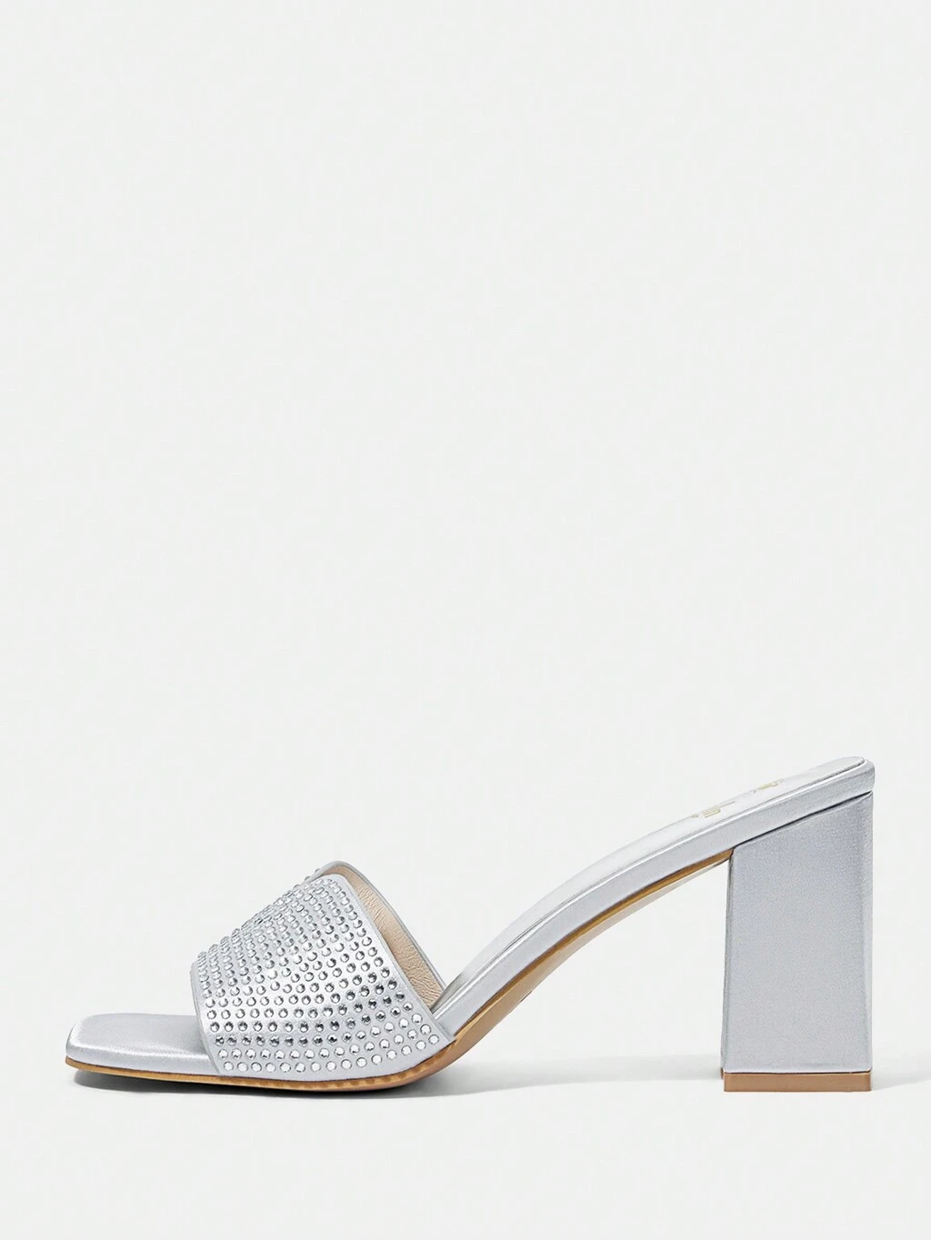 Silver Satin Hot Diamond Fashionable And Comfortable Women's Mules Small Block Heel Sandals