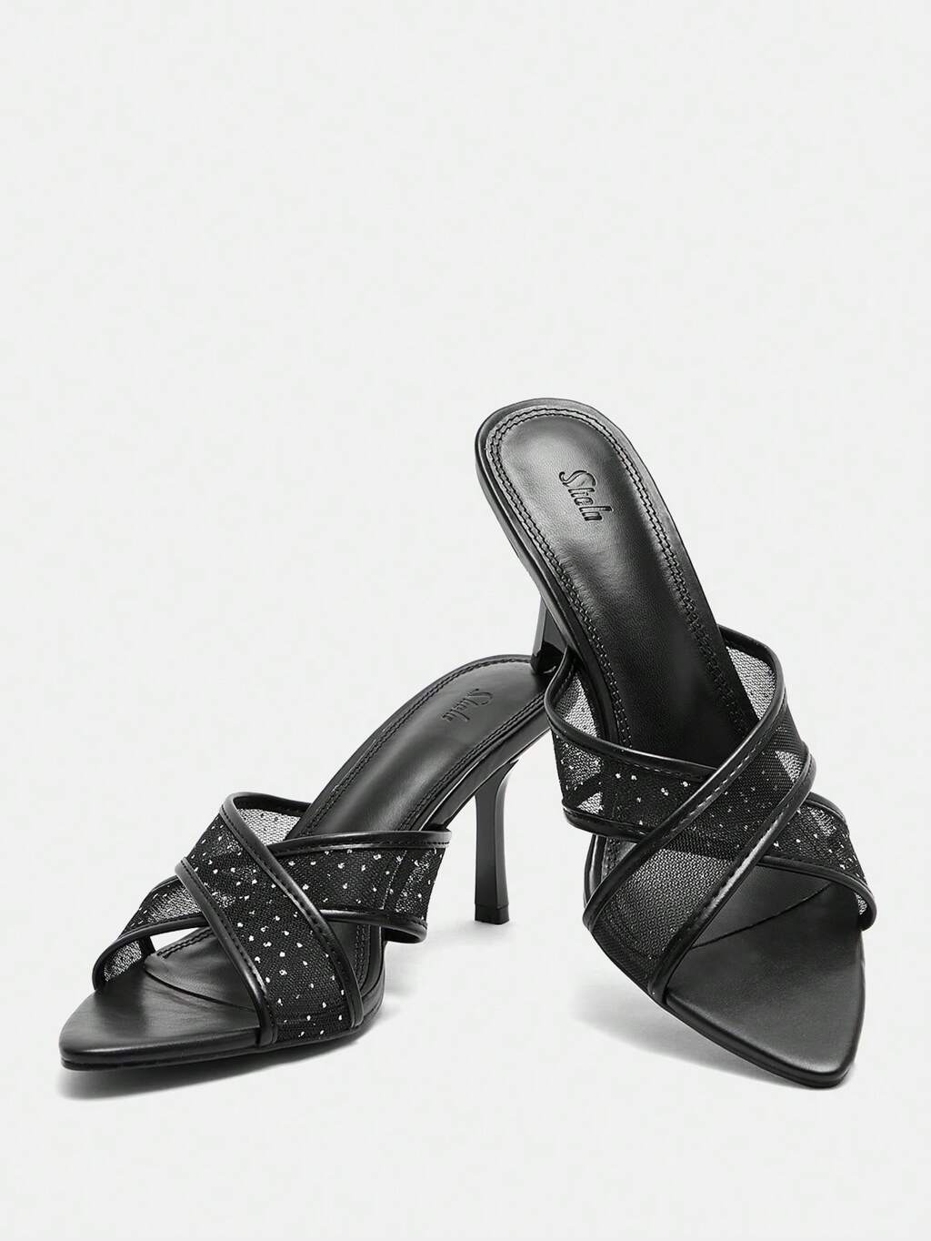 Women'S Low/High Heeled Sandals With Black Mesh Fabric Design