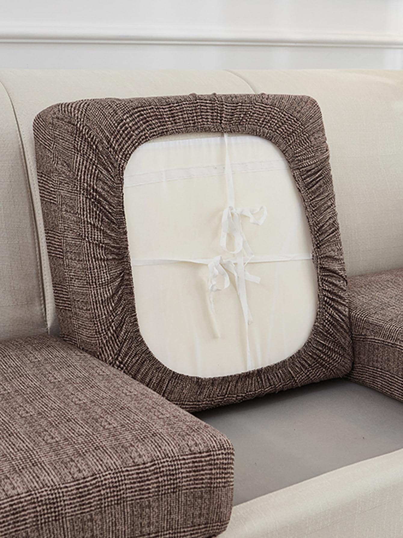1pc Plaid Pattern Sofa Seat Cushion Cover, Modernist Polyester Dust-proof Sofa Cushion Cover For Home
