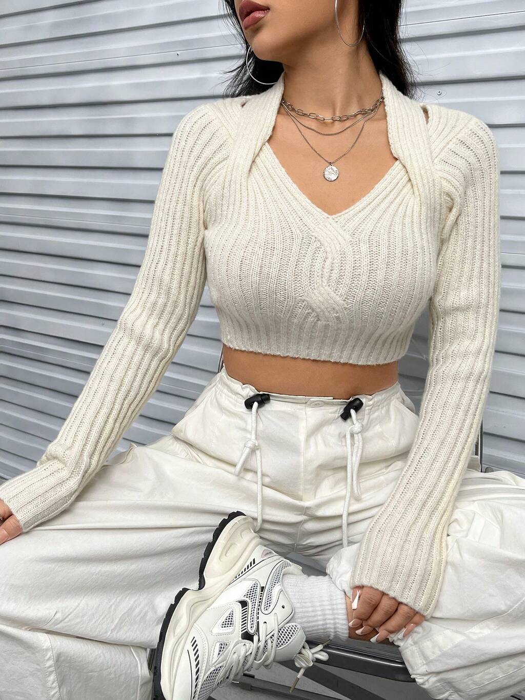 Twist Front Micro Crop Sweater & Split Thigh Knit Skirt