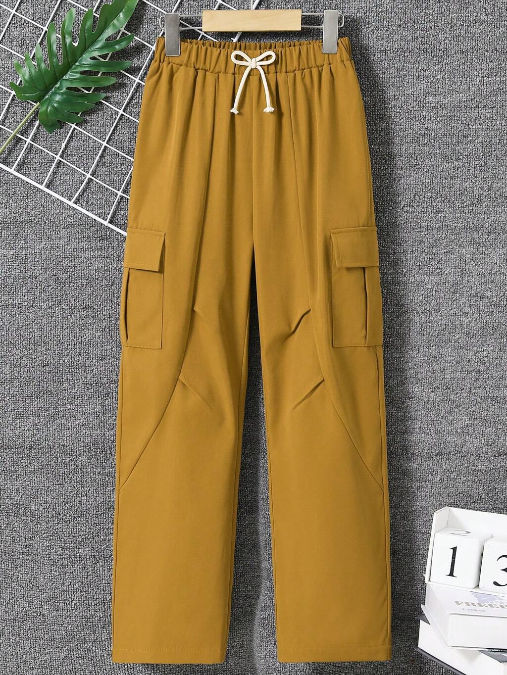 Tween Boys Elastic Waist Casual Pants With Tie Knot And Flap Pockets