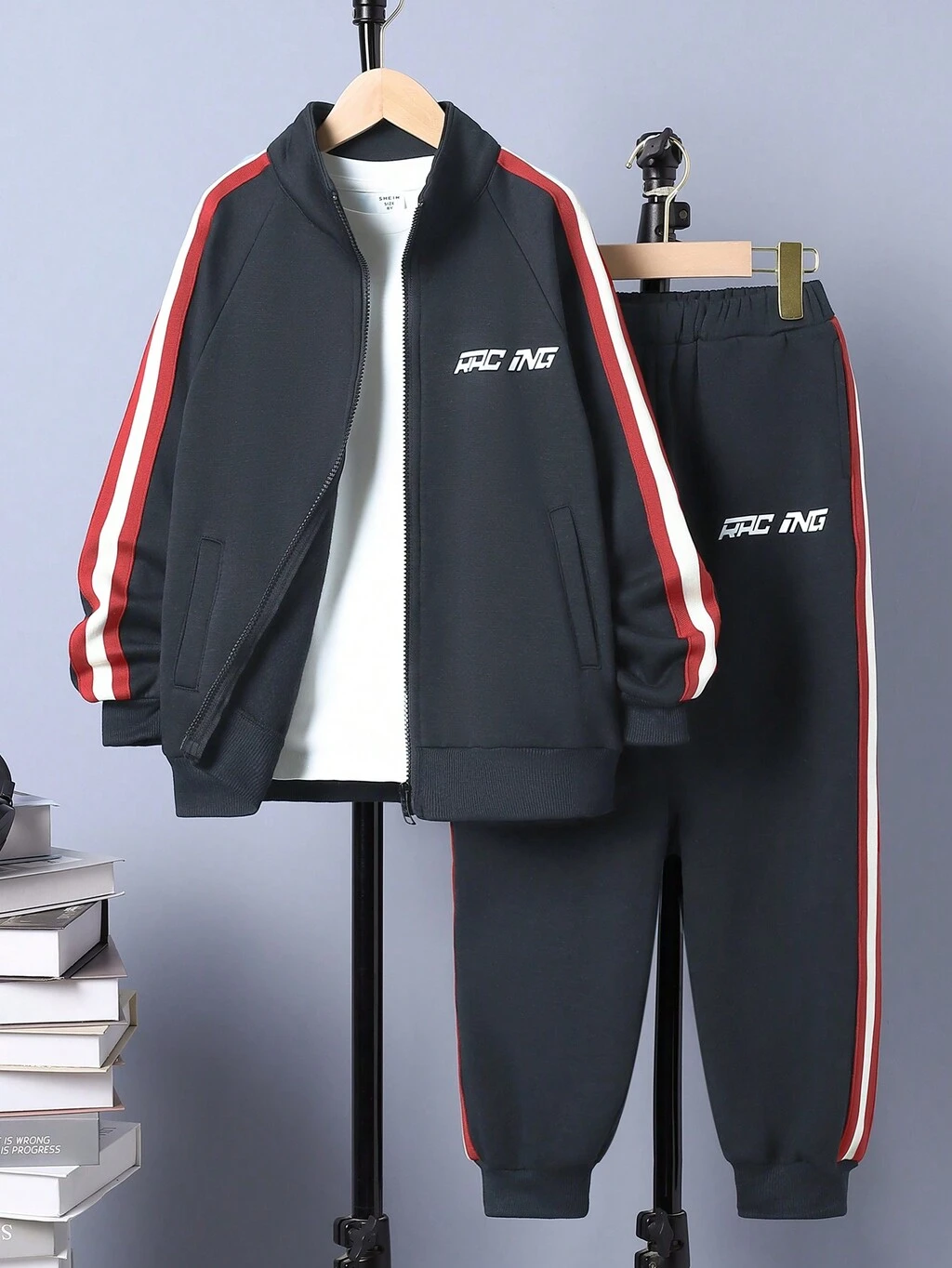 Tween Boy Letter Graphic Zip Up Hooded Jacket & Tee & Sweatpants