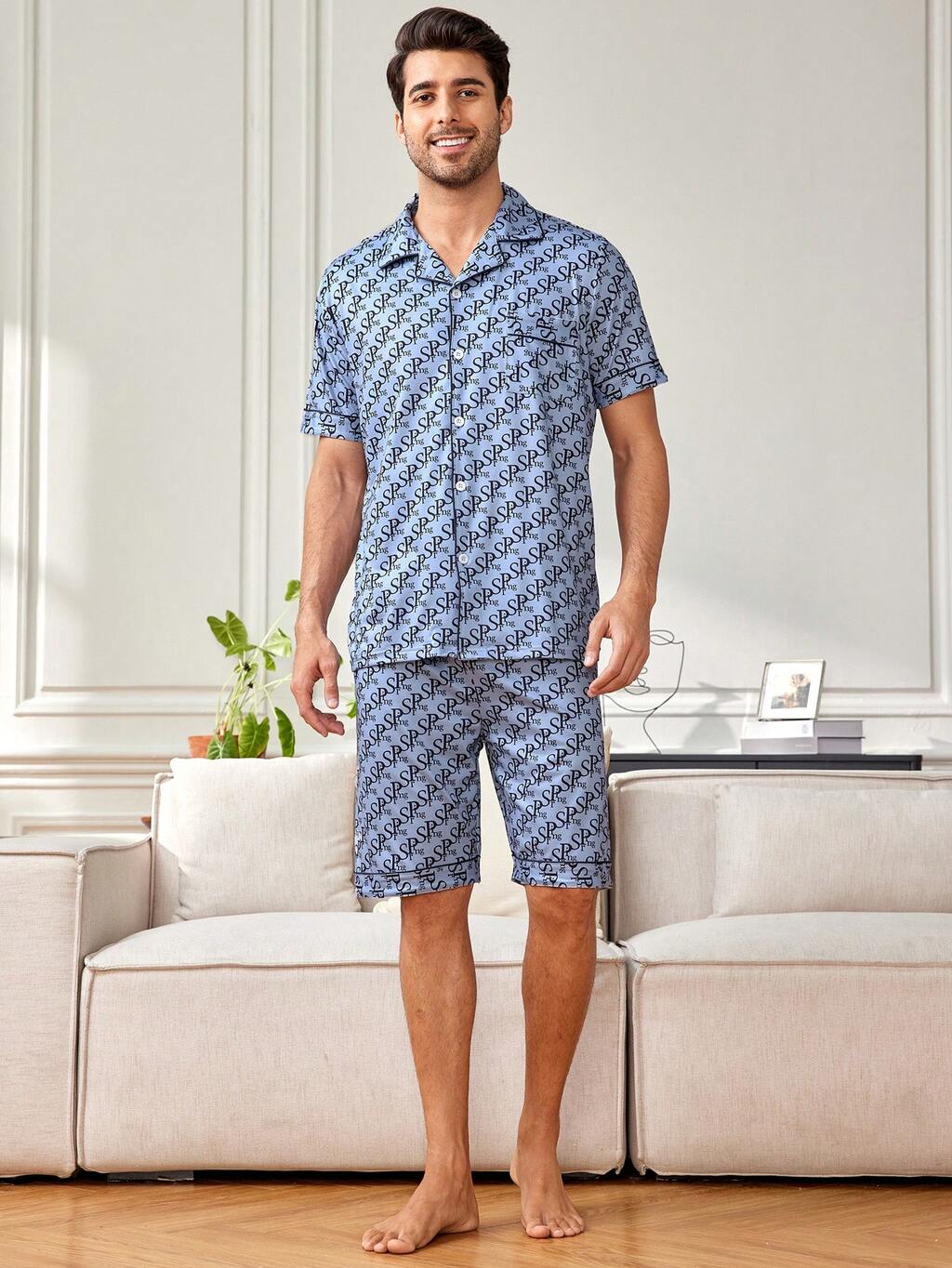 Men'S All-Over Printed Home Clothing Set