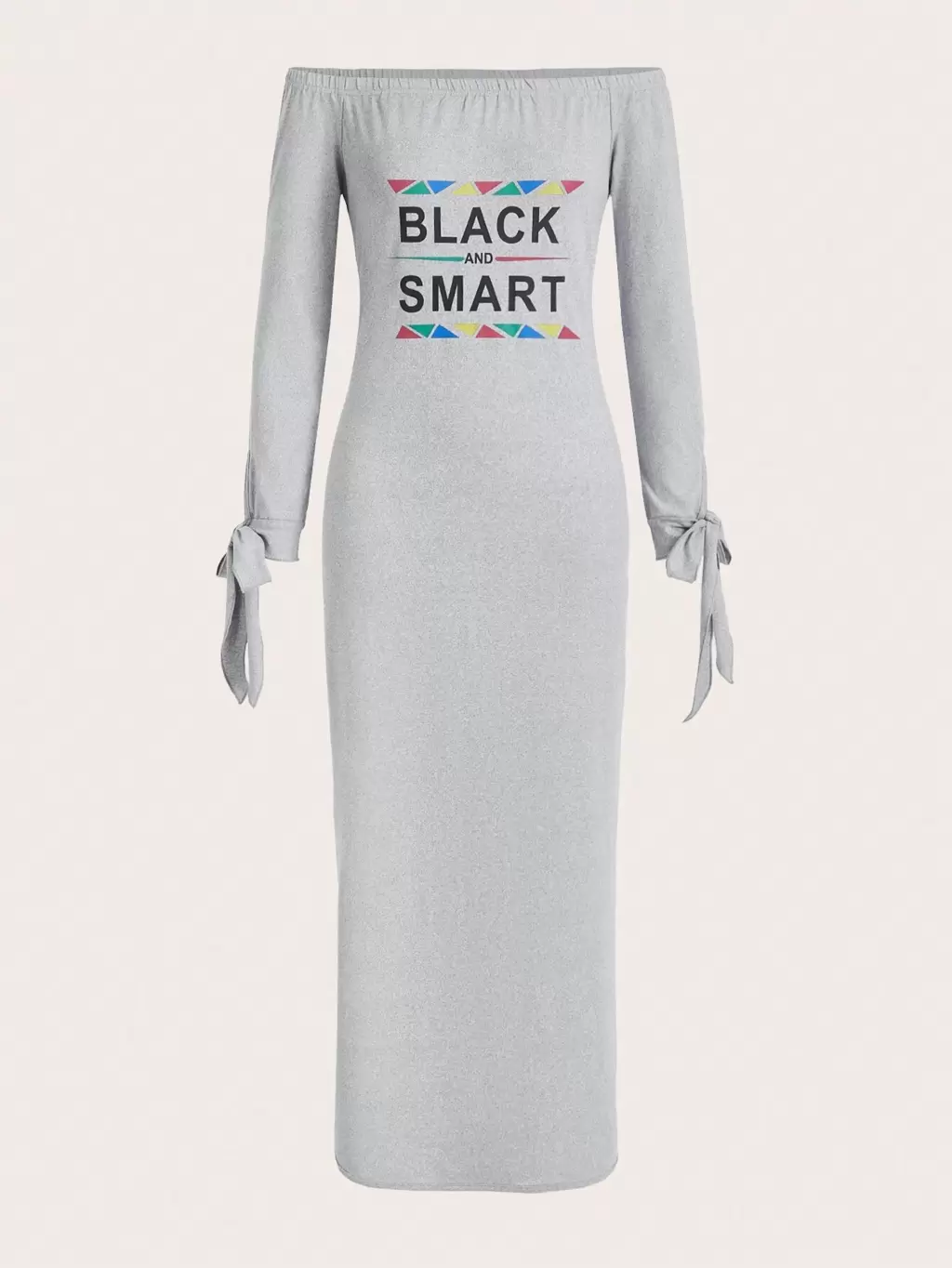 Women's Long Sleeve Off Shoulder Letter Print Dress Fall Cloth For Women