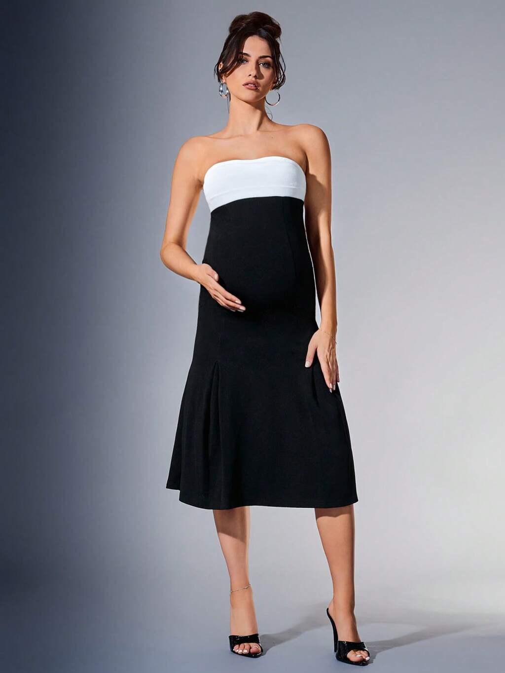 Maternity Elegant Holiday Strapless Dress With Back Bow And Mermaid Hem, Young And Mature Style