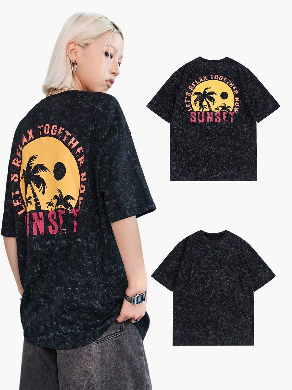 Vintage Palm Tree Print Oversized T-Shirt, Casual Streetwear Vacation Style For Women, Boyfriend Chic