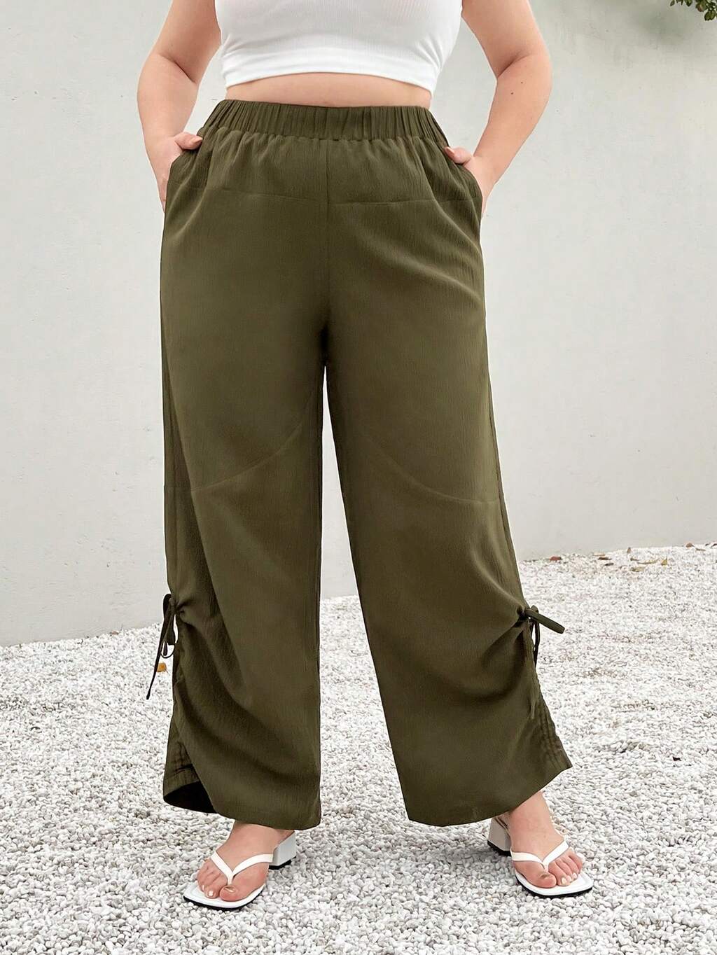 Women's Plus Size Drawstring Elastic Waist Pocketed Casual Pants For Date, Party And Vacation