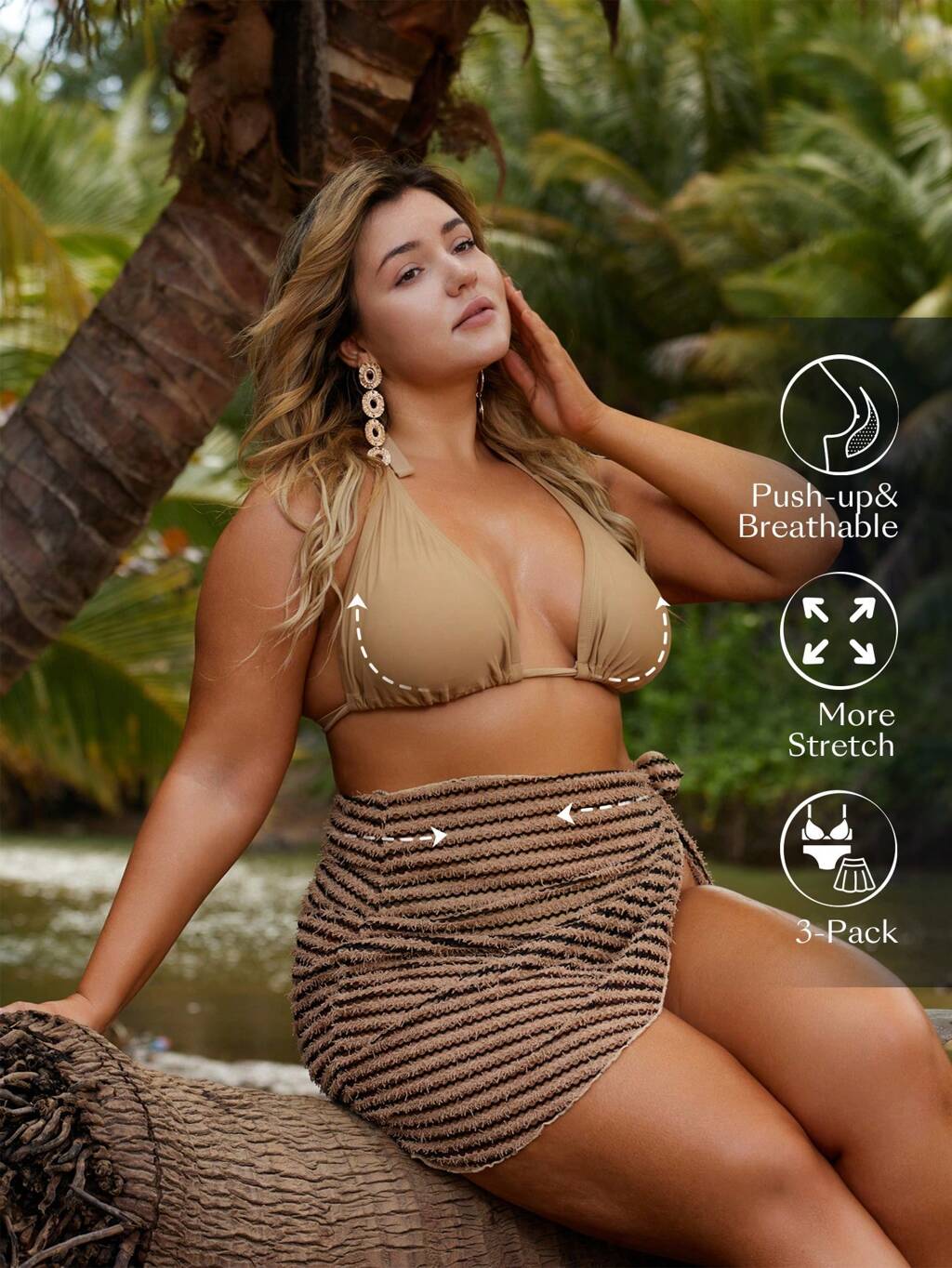Plus Size Women's Push Up Halterneck Bikini Set Suit, Bikini Set Swimwear With Cover Up Skirt Bathing Suit Beach Outfit Summer Vacation Summer Beach