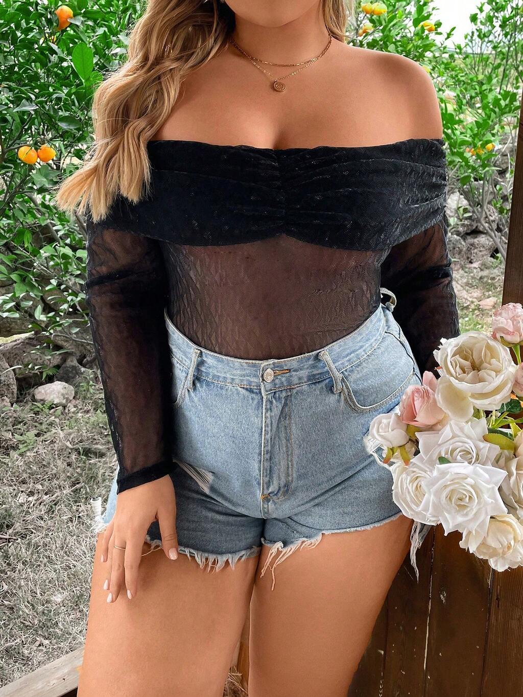 Plus Size Pleated Bust Off Shoulder Top Fall Cloth For Women