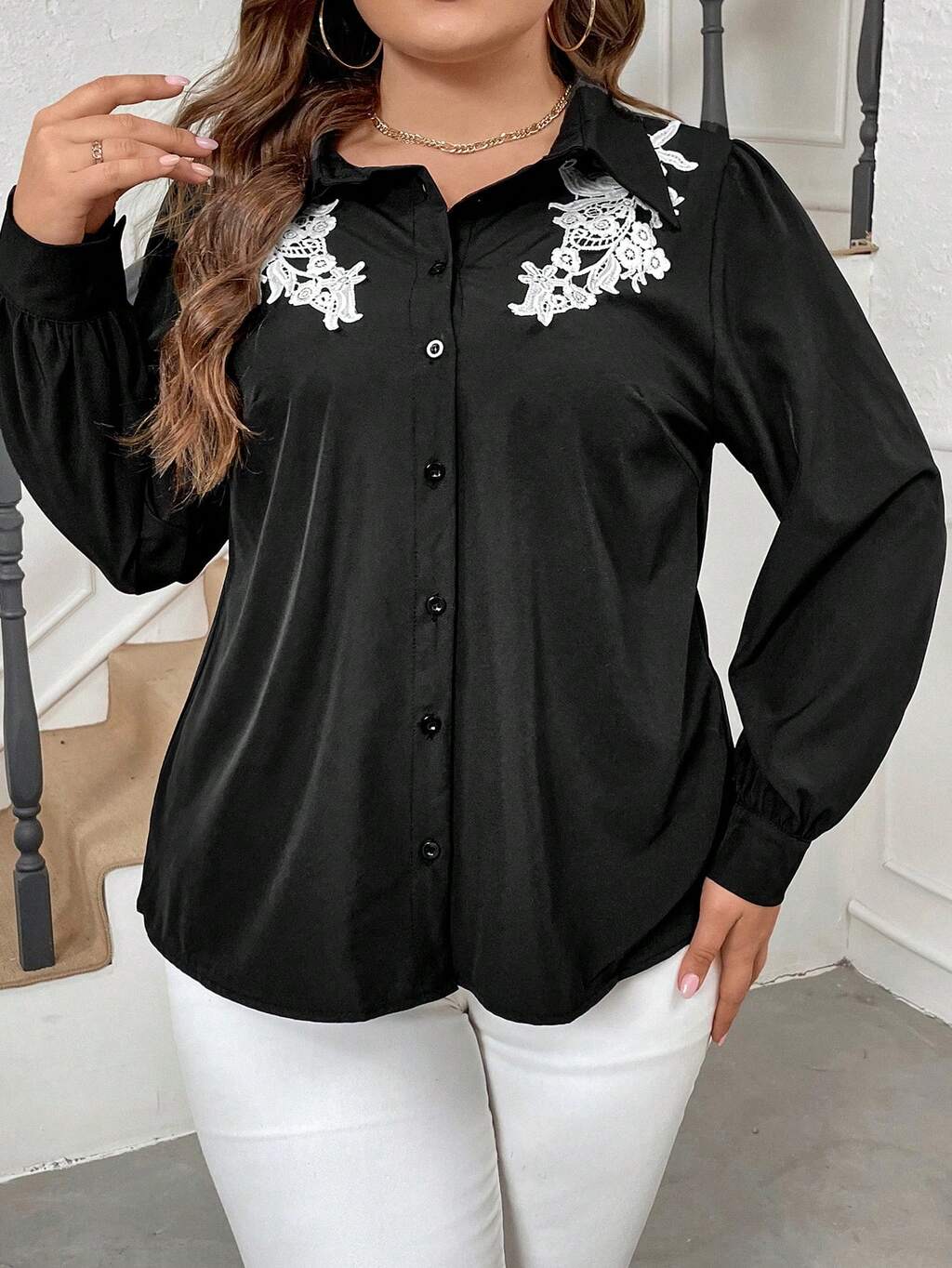 Plus Size Women's Lace Patchwork Long Sleeve Shirt