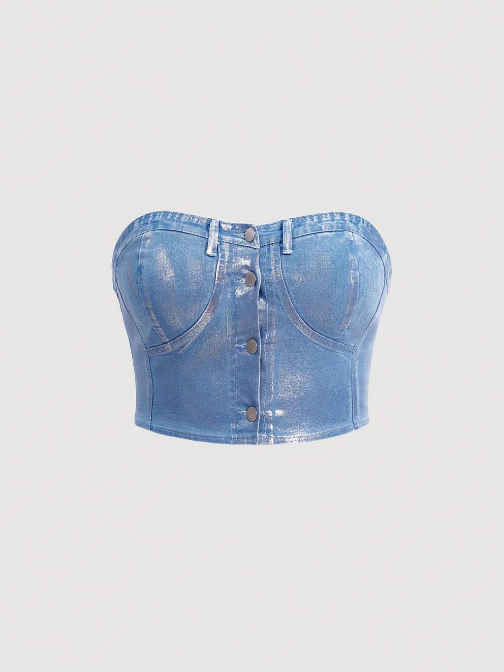 Sexy Plus-Size Women'S Cropped Denim Bustier Top