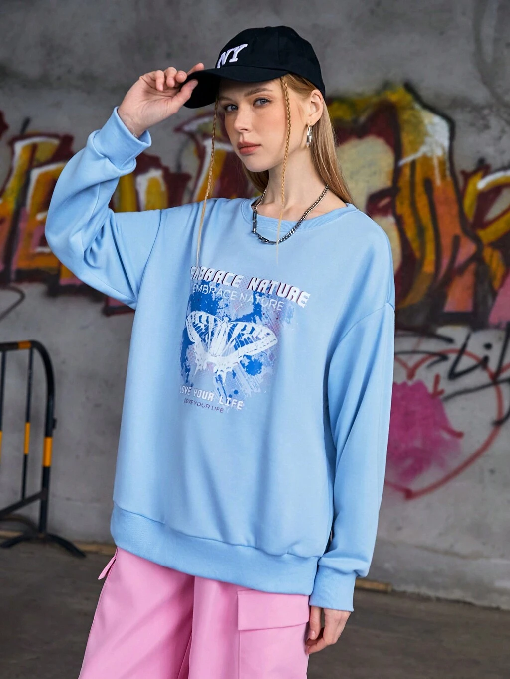 Women's Butterfly & Slogan Printed Round Neck Sports Sweatshirt