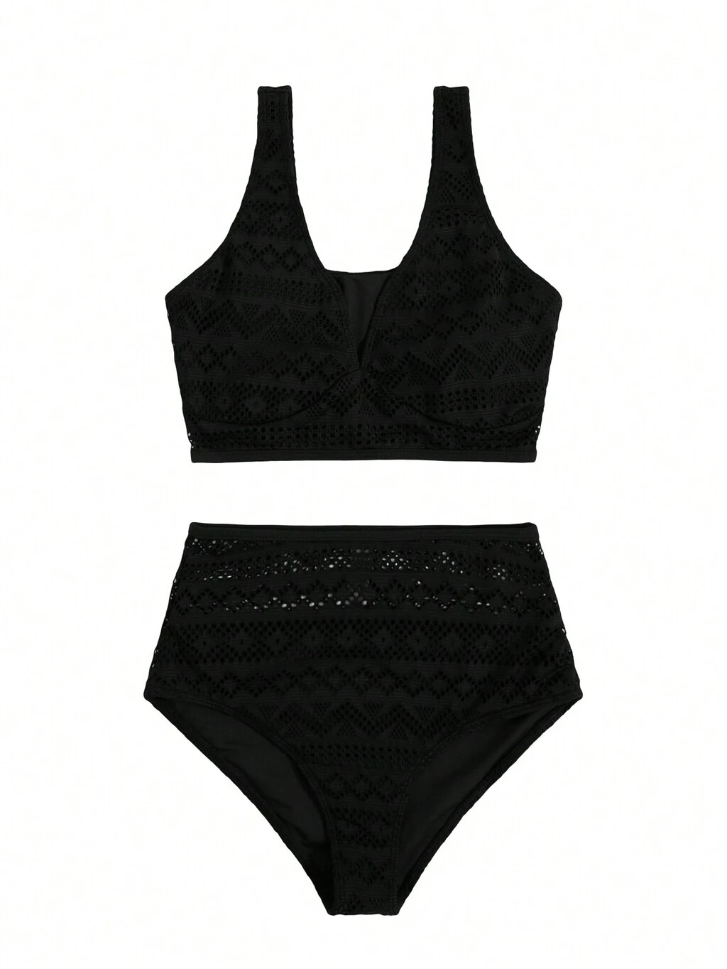 Women's Plain Hollow Out Texture Bikini Set Summer Beach