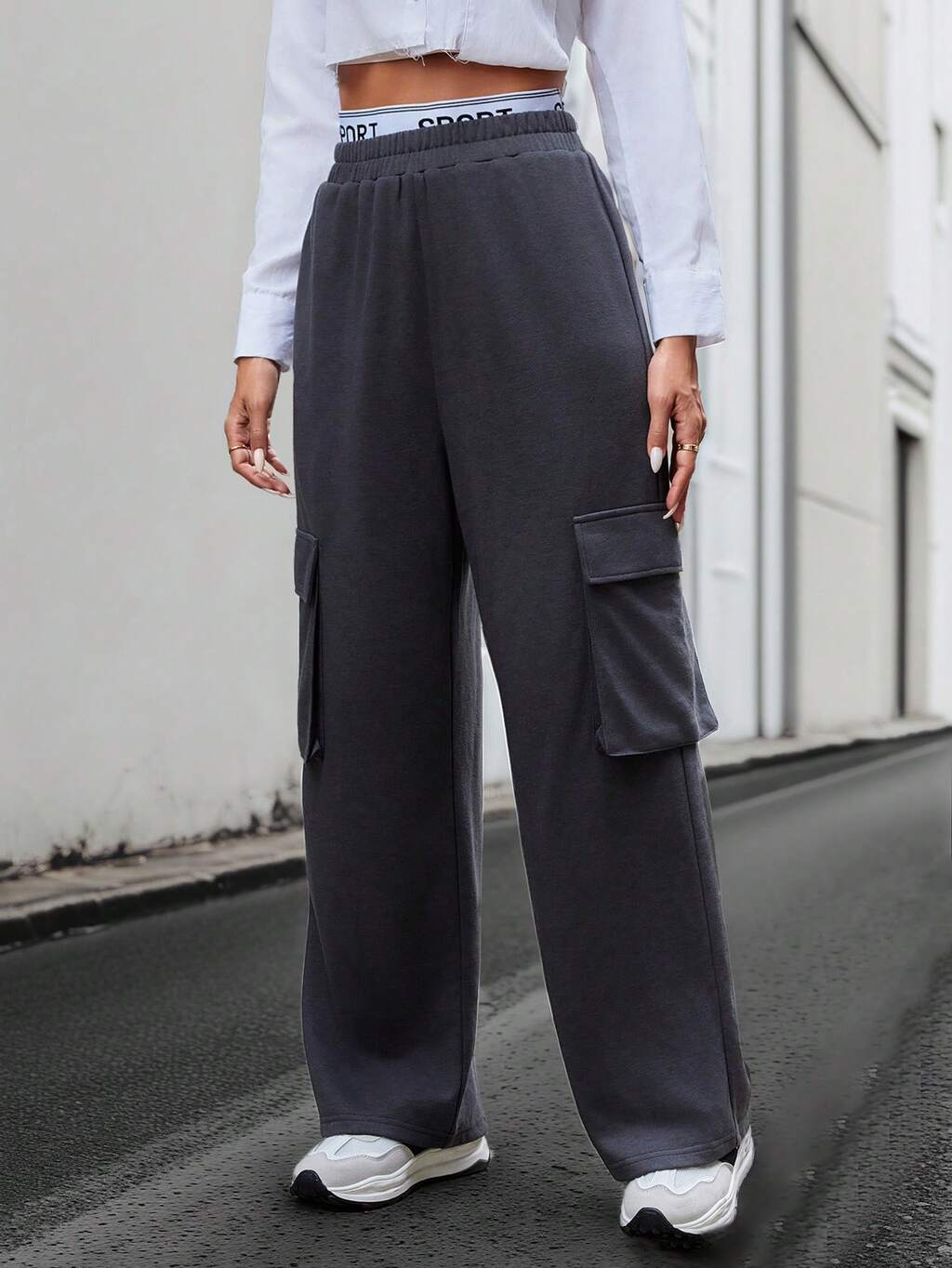 Solid Flap Pocket Drawstring Waist Cargo Pants