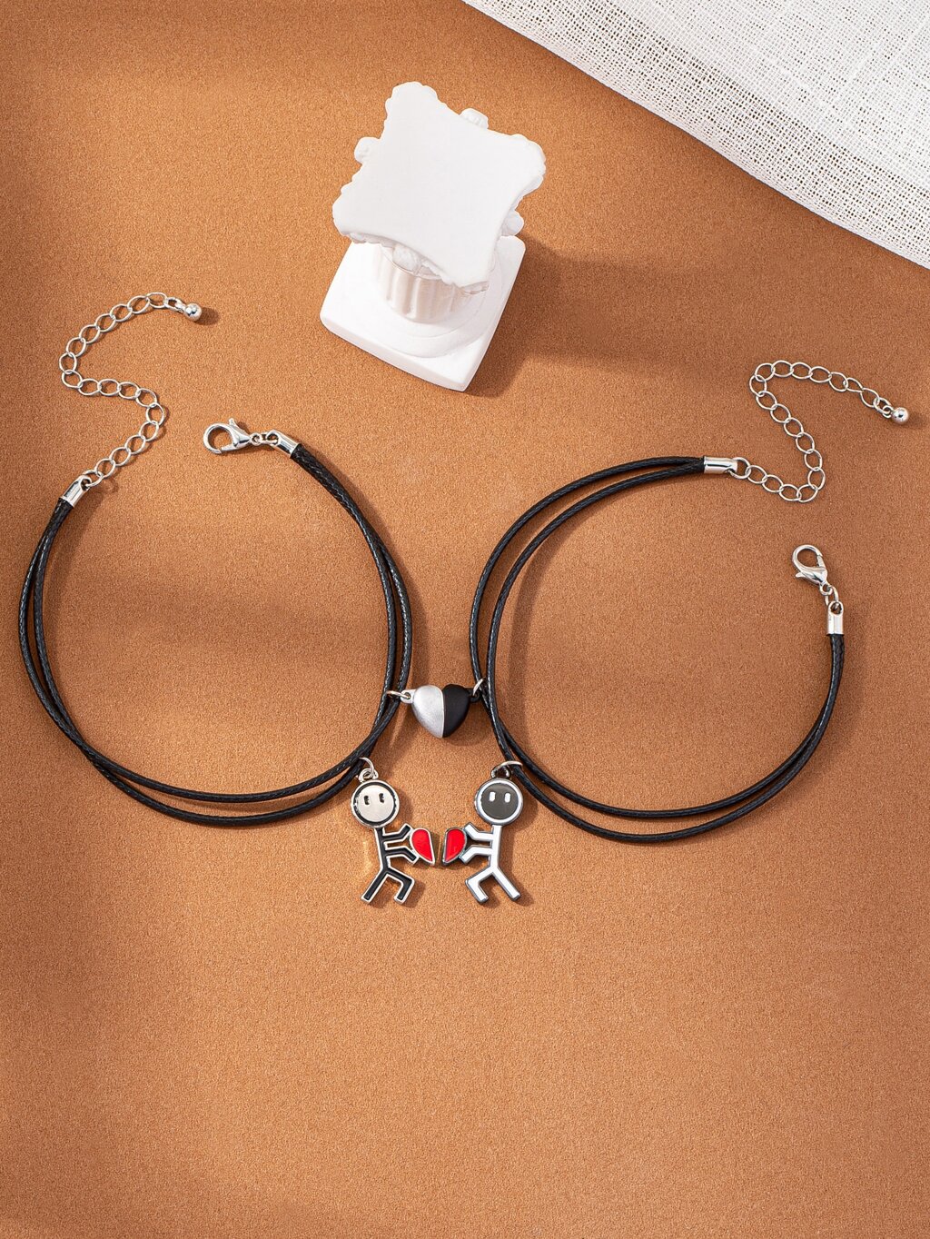 2pcs Heart & Figure Charm Bracelet