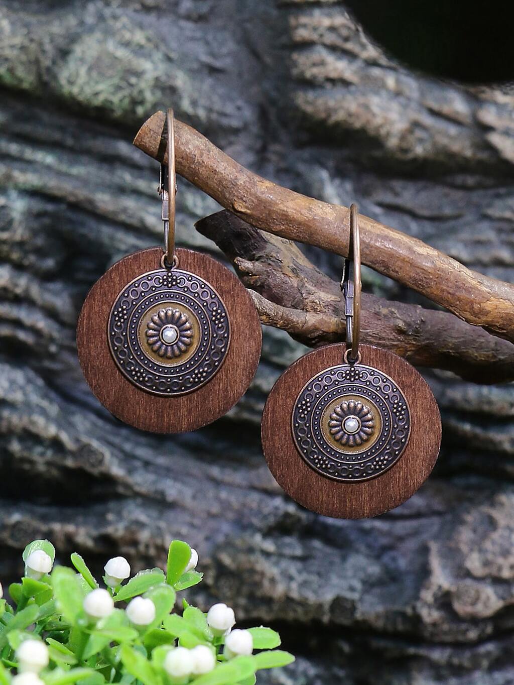 TopHanqi 1 Pair Bohemian Style Bronze Round Pendant Earrings For Women, Suitable For Daily Life, Work, Stage Performance, Street Snap, DIY Jewelry