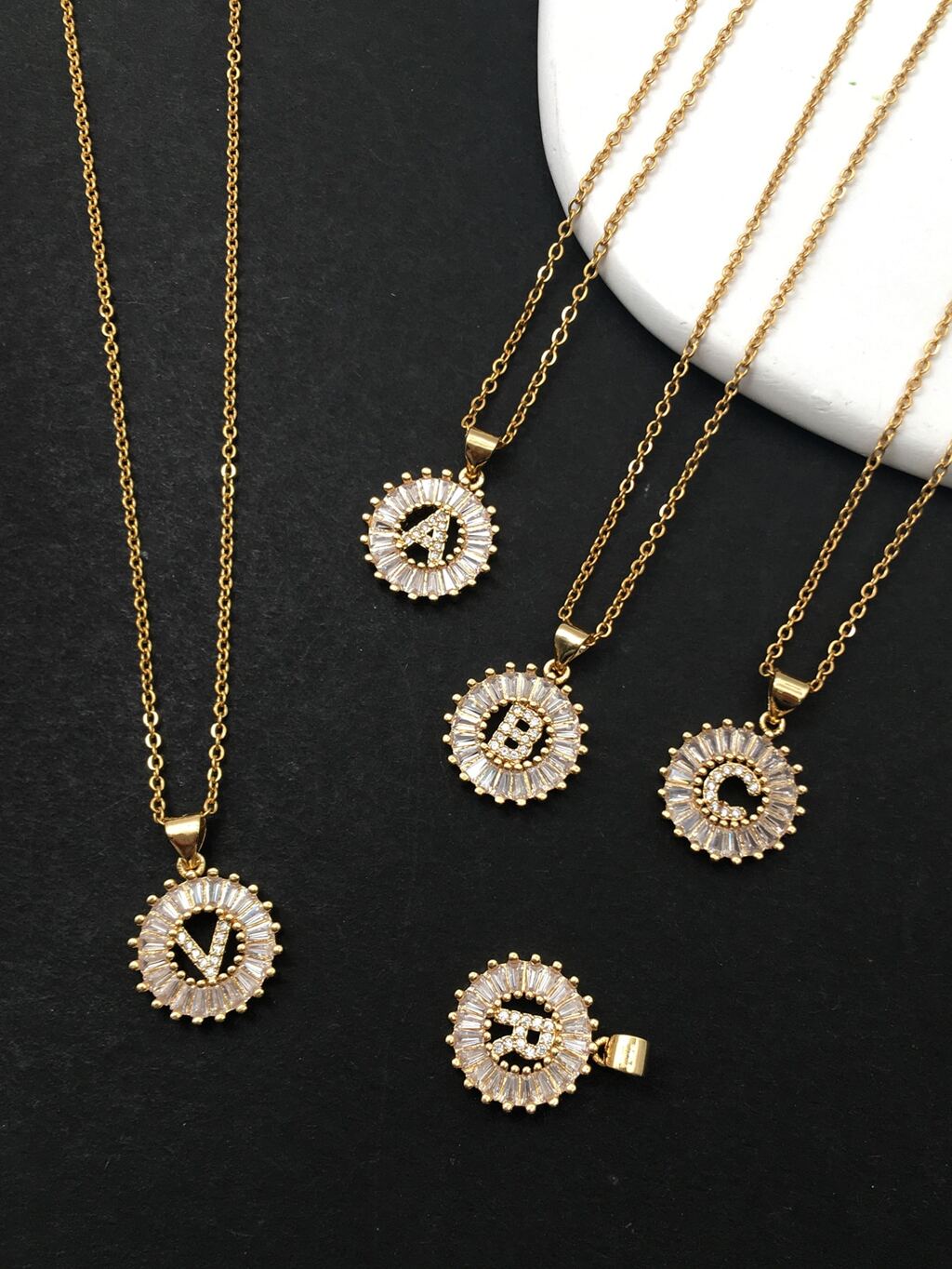 Rhinestone Letter Decor Round Charm Necklace