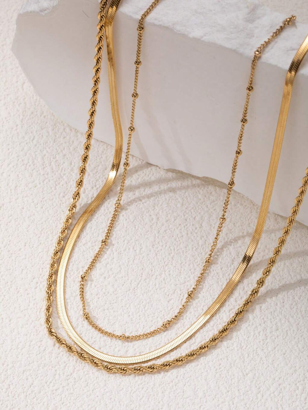 3pcs 14K Gold Plated Waterproof Non-Fading Stainless Steel Jewelry Set: Fashionable Herringbone Necklace, 14K Gold Plated Snake Chain Necklace, Minimalist Layered Gold Necklace, Ideal Gift For Women, Suitable For Halloween, Christmas
