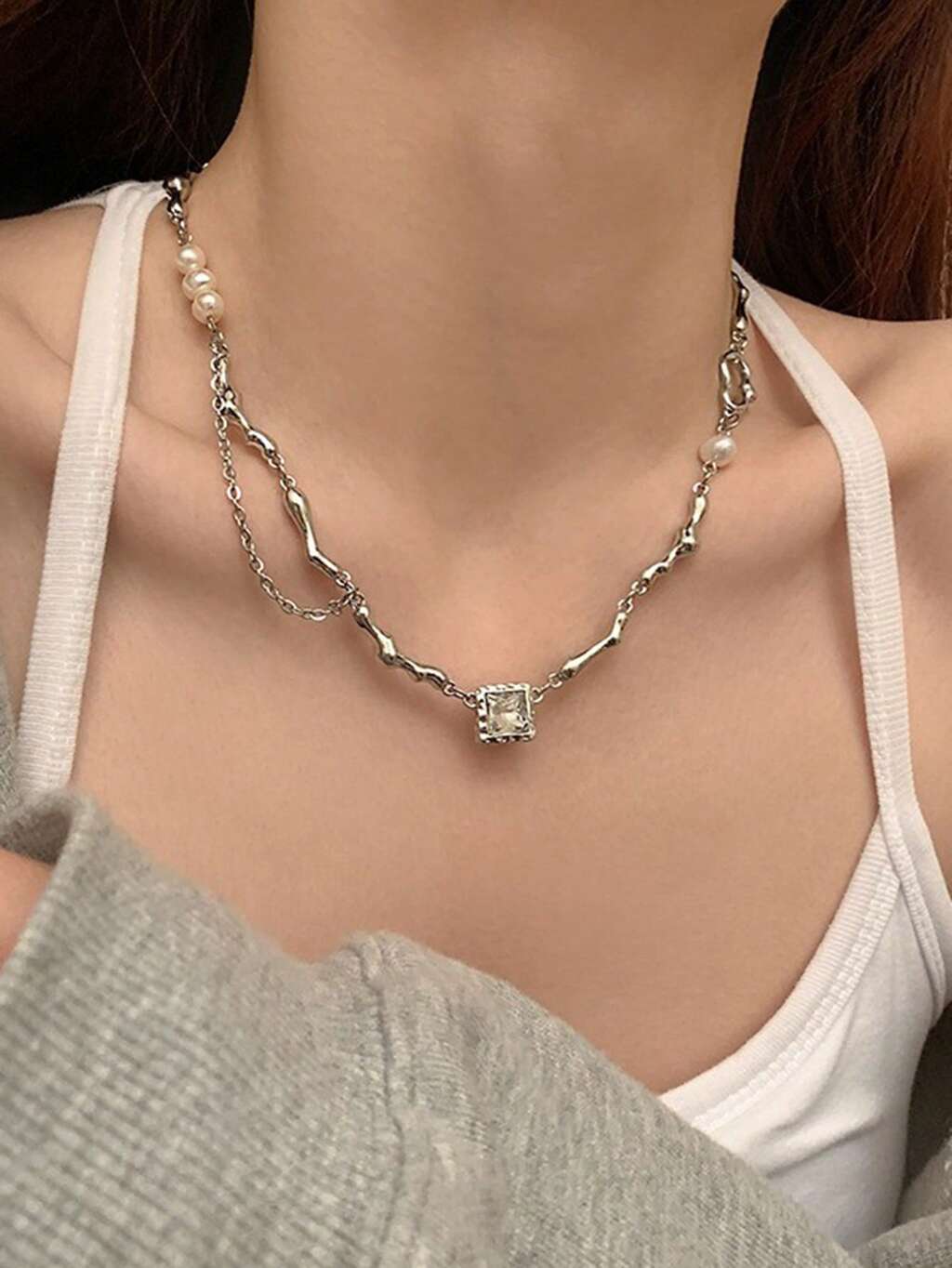 1pc Fashion Cubic Zirconia Decor Chain Necklace For Women For Daily Decoration