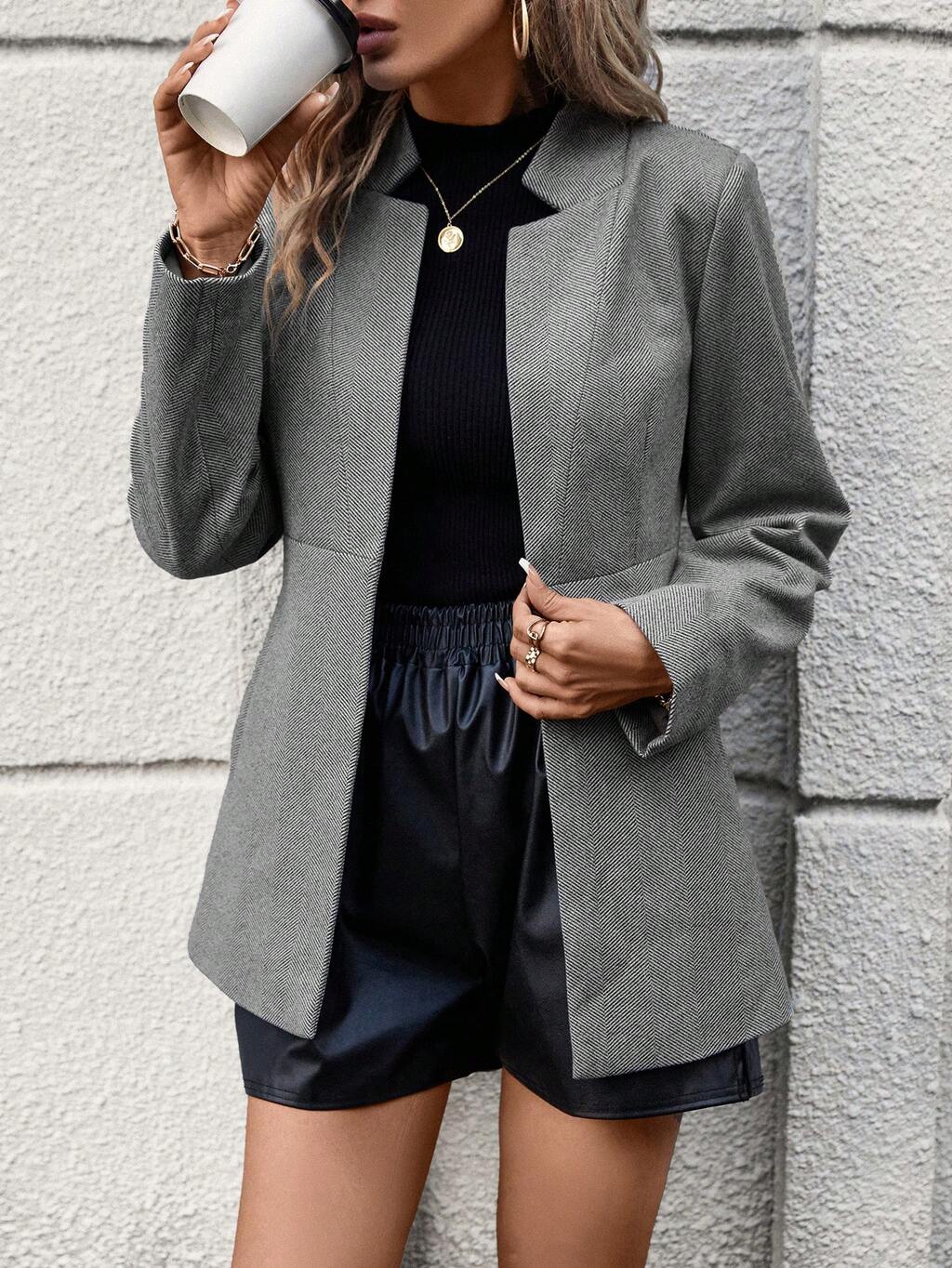 Contrast Plaid Print Flap Pocket Coat Fall Cloth For Women