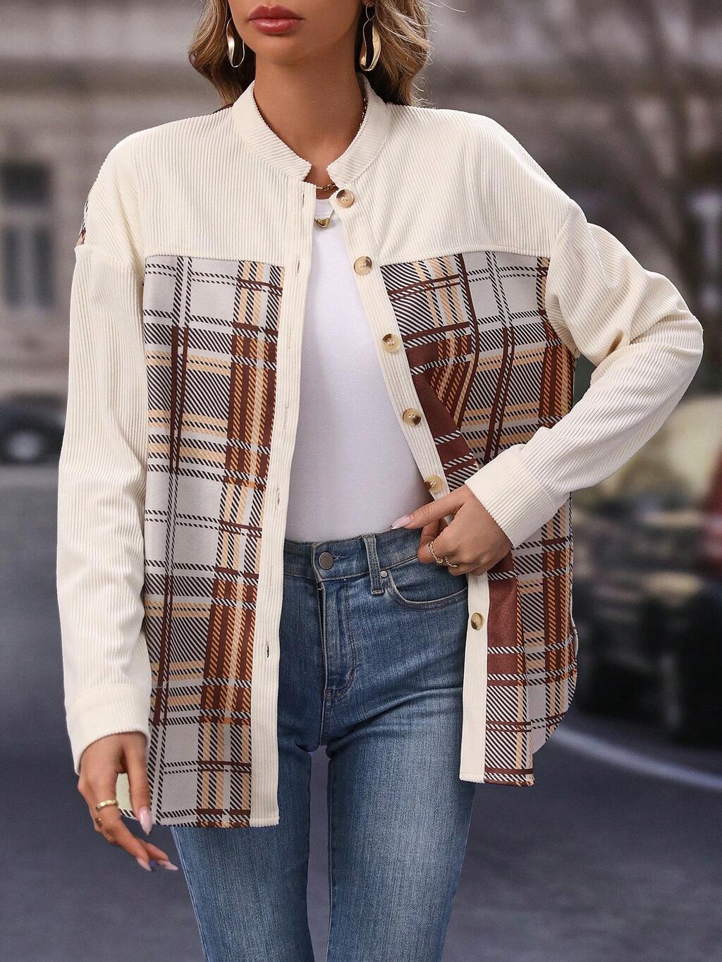 Plaid Print Drop Shoulder Button Front Coat Fall Cloth For Women