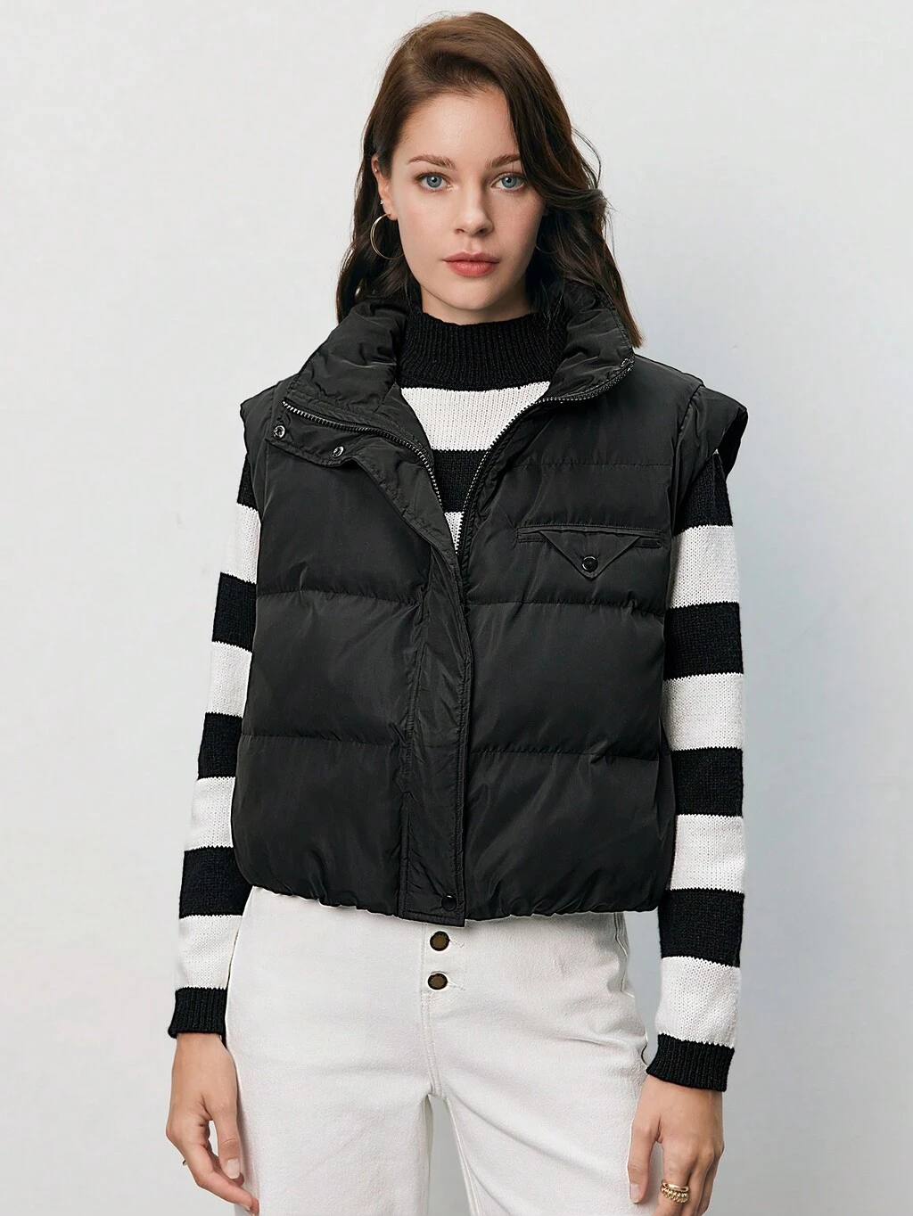 Colorblock Zip Up Casual Vest Winter Coat