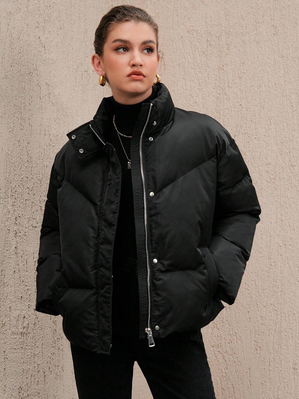 Women Zipper Cropped Padded Padded Coat Clothes Winter