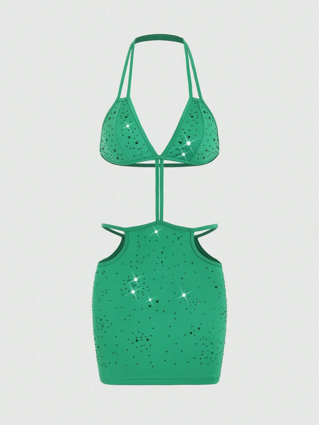 Women's Sleeveless Halter Neck Diamond-Studded Hollow-Out Backless Dress