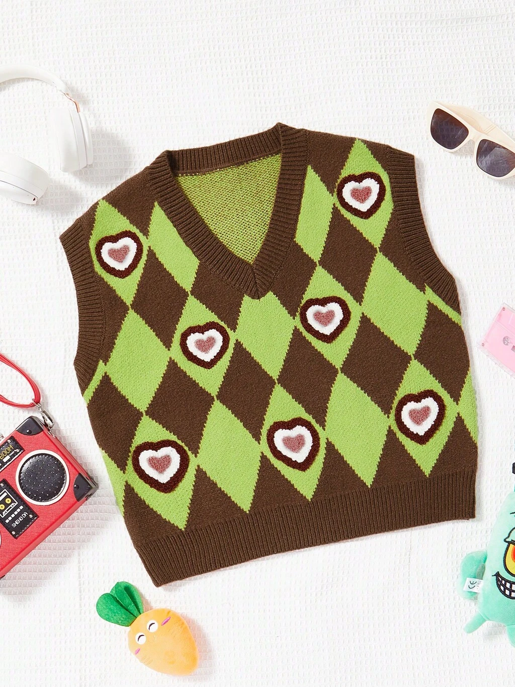 Heart & Argyle Pattern Sweater Vest