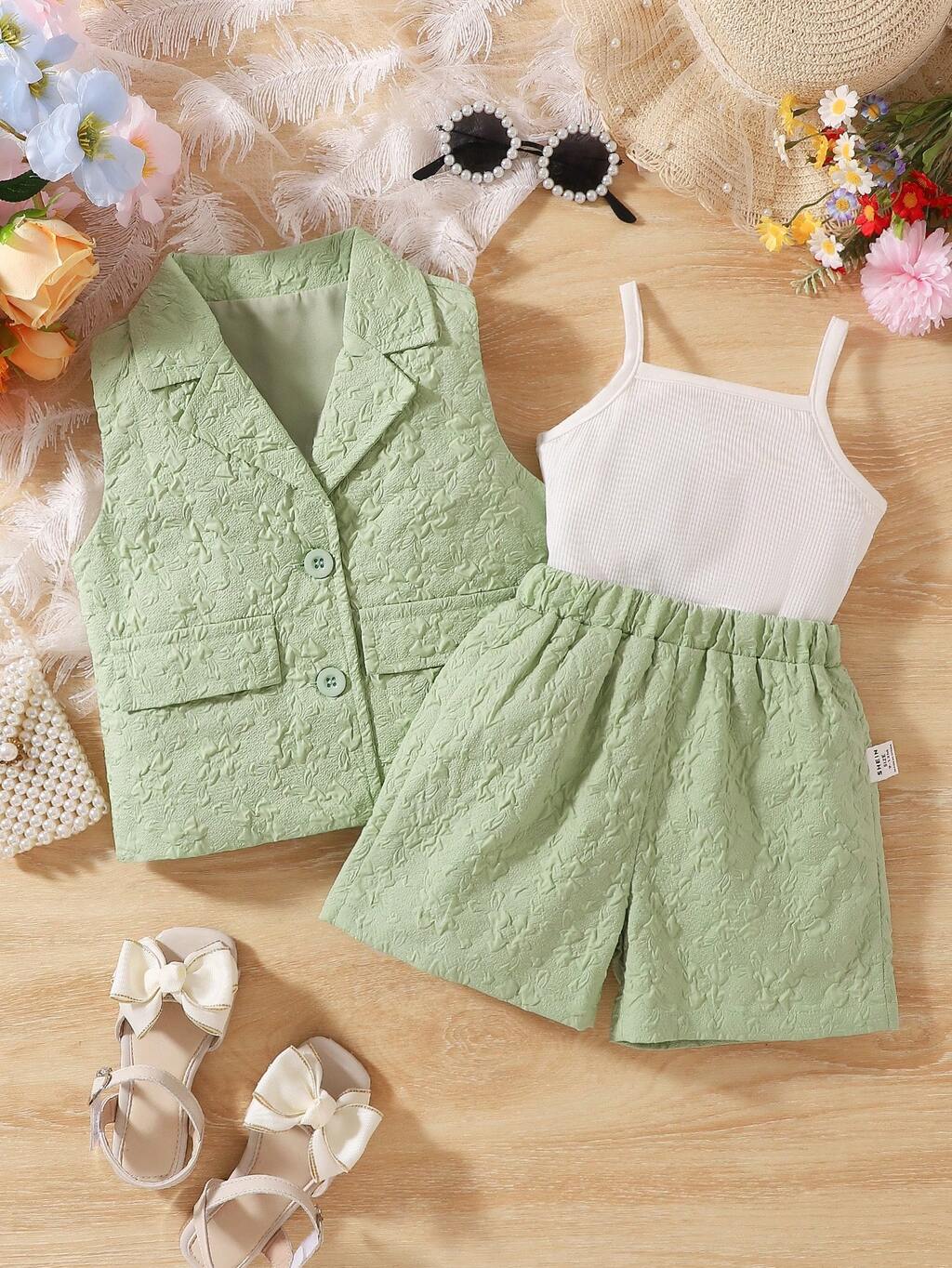 Baby Boy Summer Workwear Pocket Hooded Vest Solid Color Round Neck Short Sleeve T-Shirt And Shorts Casual Set
