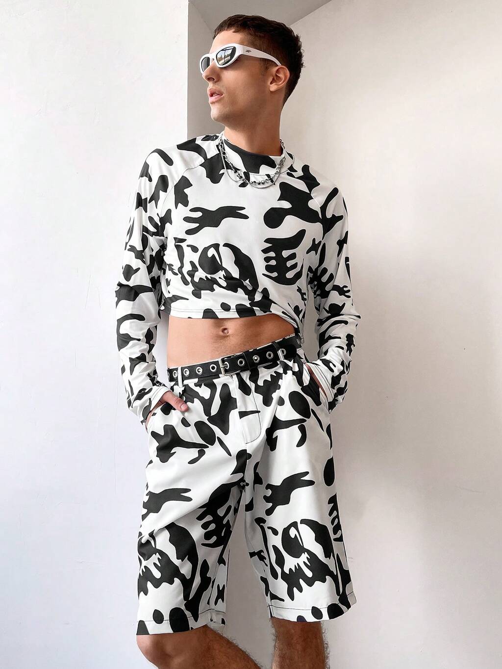 Herren Gedrucktes Crop Top- Und Shorts Set Ohne Gürtel