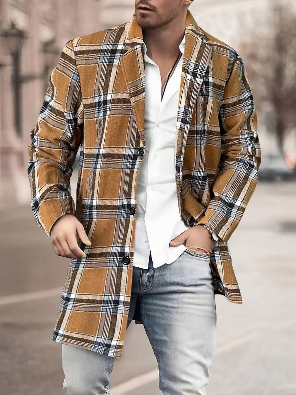 Männer 1 Stück Mantel mit Plaid Muster,