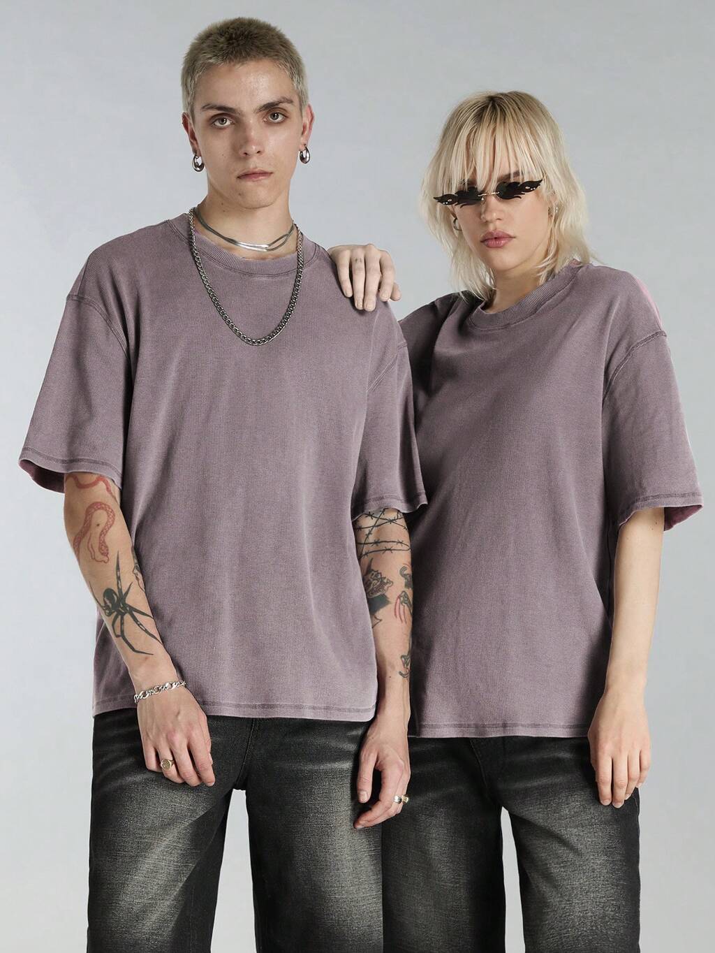 Hellgraue Denim Im Street-style Für Herren Mit Herz-Muster Und Ausgefranstem Saum