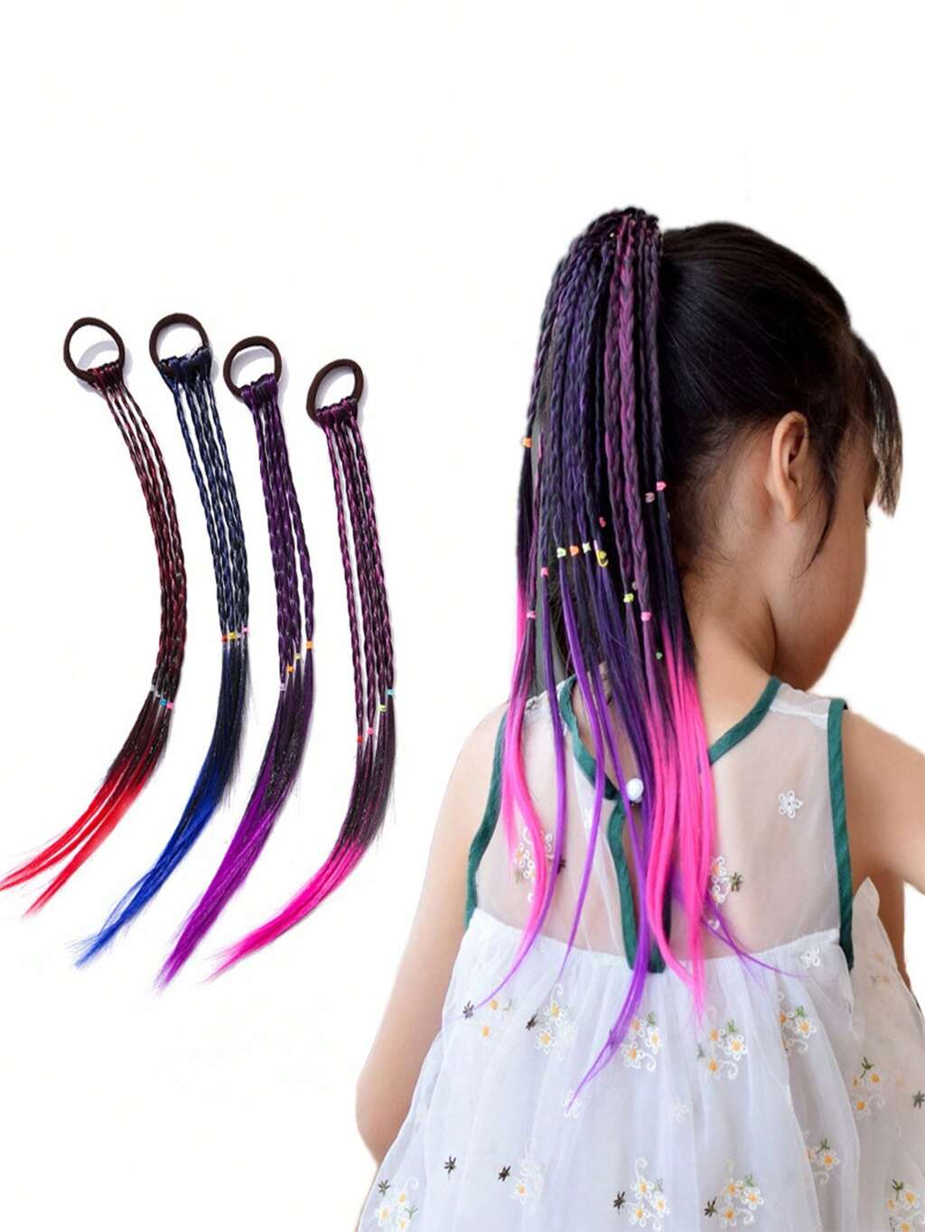 4 Stück Mädchen Farbverlauf geflochtene Haargummis, bunte gewebte Fake Dreadlock Haargummis für Kinder