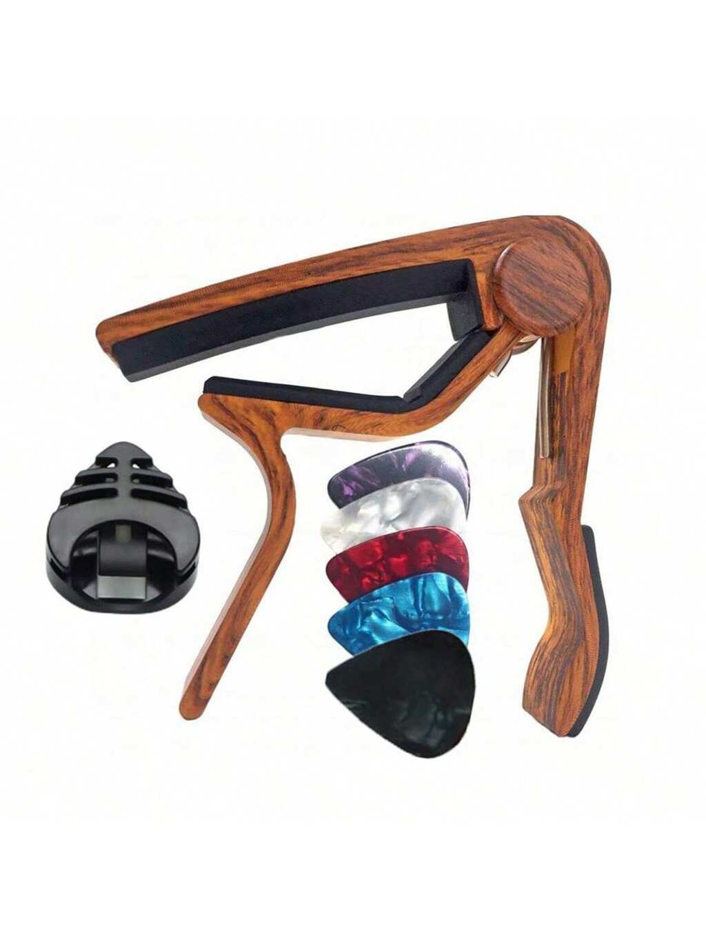 7 Stücke Gitarren Capo Für Akustische Und Elektrische Gitarren Mit 5 Kostenlosen Plektren Und 1 Halter, Rosholz