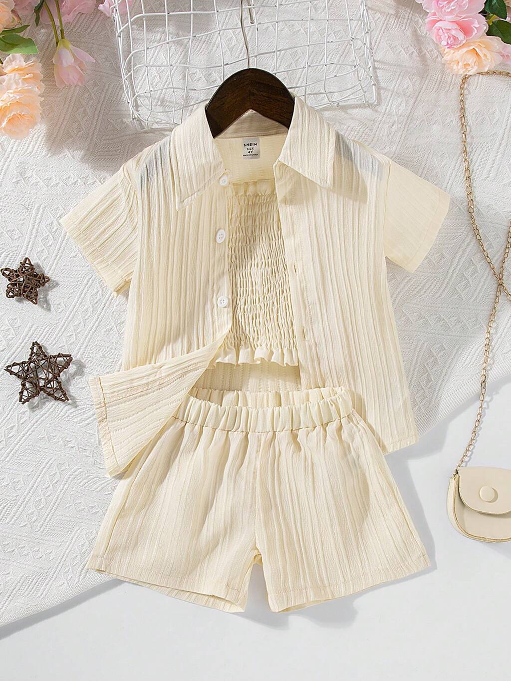 Set aus Sommer Lässig Weste und Shorts Einfarbig für Kleine Mädchen
