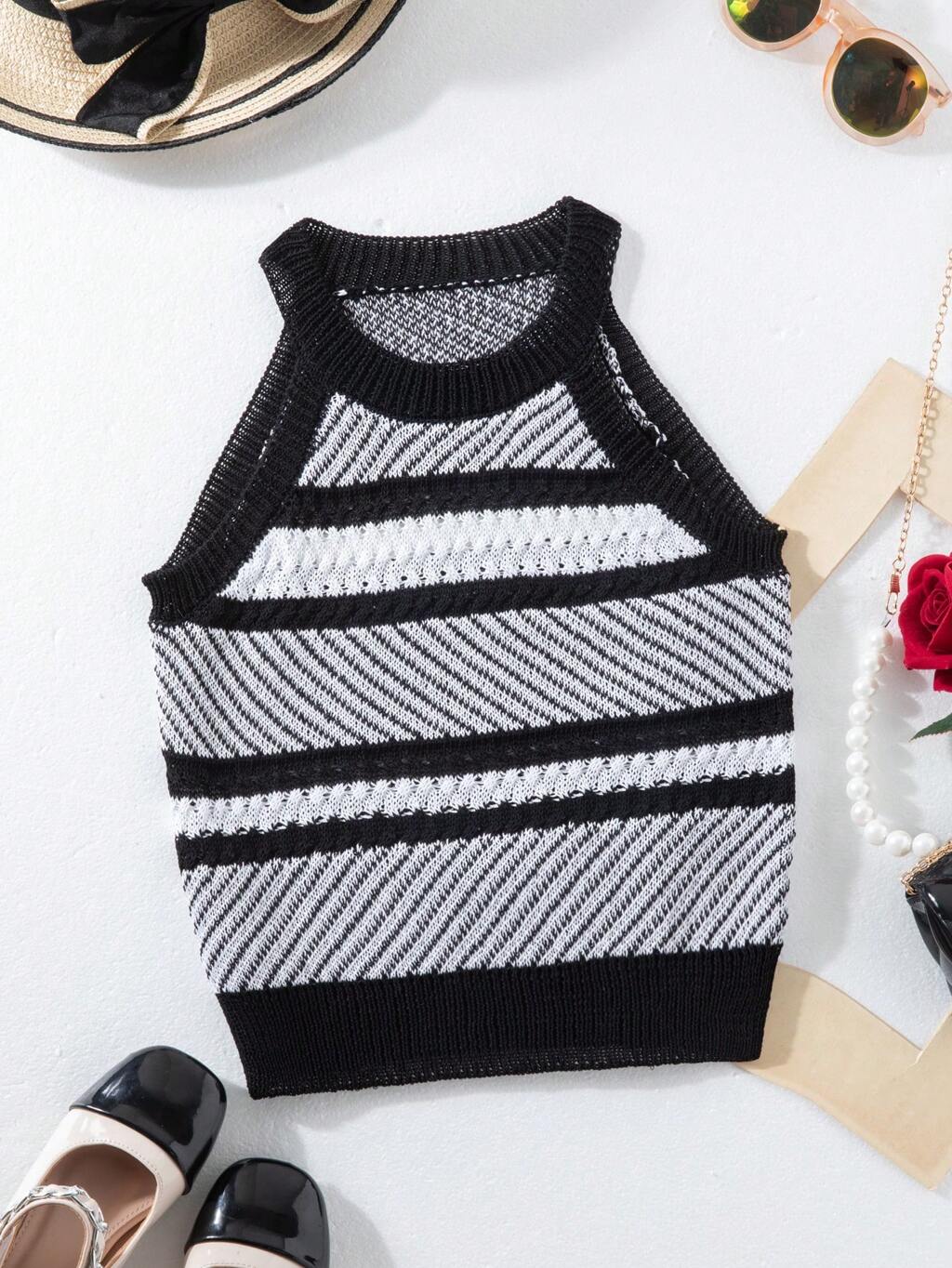 Gestreiftes Ärmelloses Halter Top Aus Strick Für Teenager Mädchen
