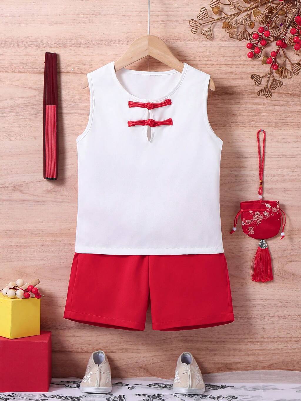 Kleine Jungen 2 Stücke Set im chinesischen Stil mit coolem Schnallenverschluss, weich, bequem, kühl und atmungsaktiv, perfekt für den täglichen Sommertragen