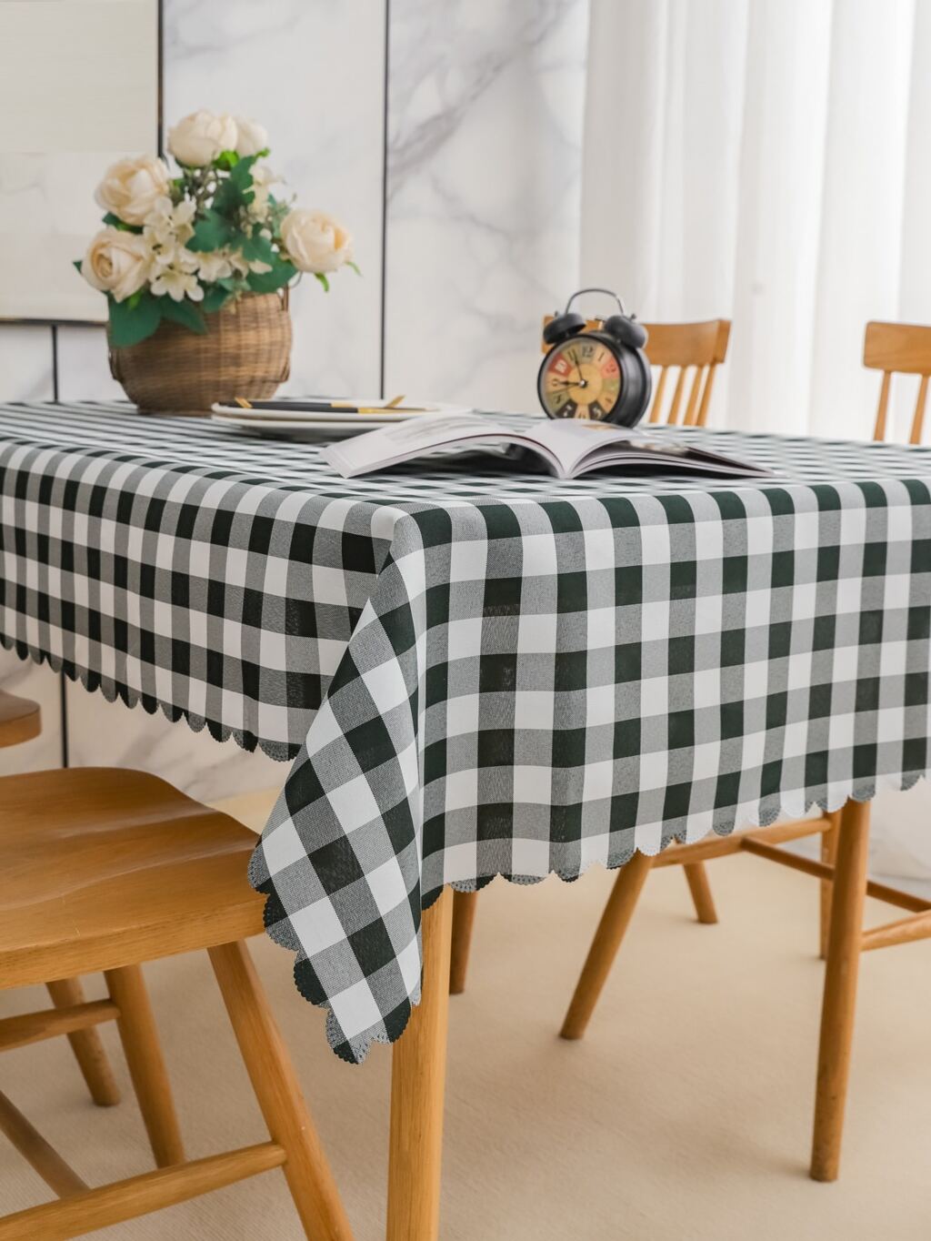1 pieza Mantel negro con blanco de cuadros
