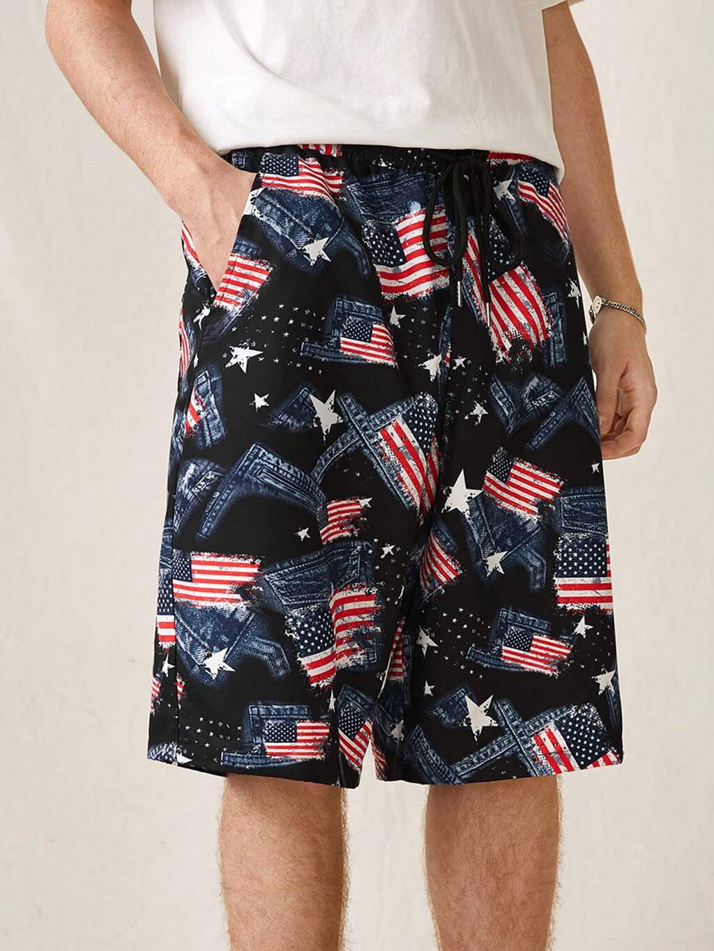 Shorts casuales de verano para hombres con estampado de bandera estadounidense