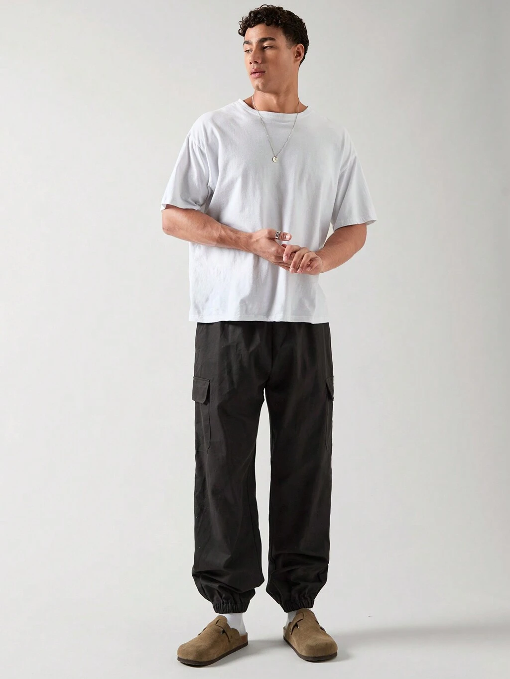 Pantalones cargo jogger para hombre casual de unicolor decorados con cadena