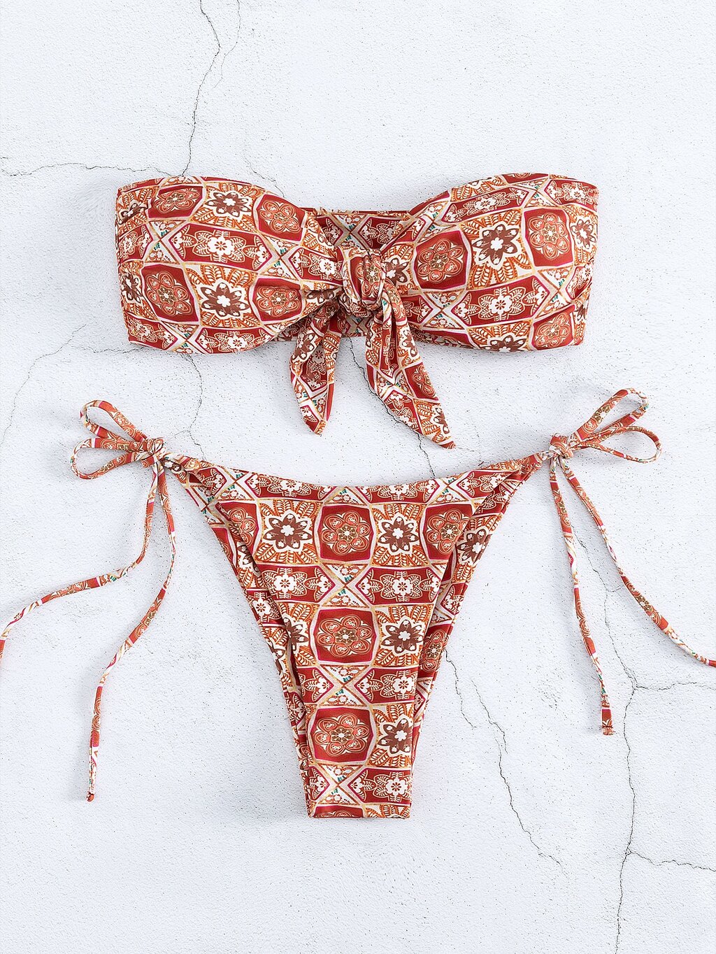 Conjunto de bikini con estampado integral para playa de verano, con nudo frontal y cinta para atar en el pecho