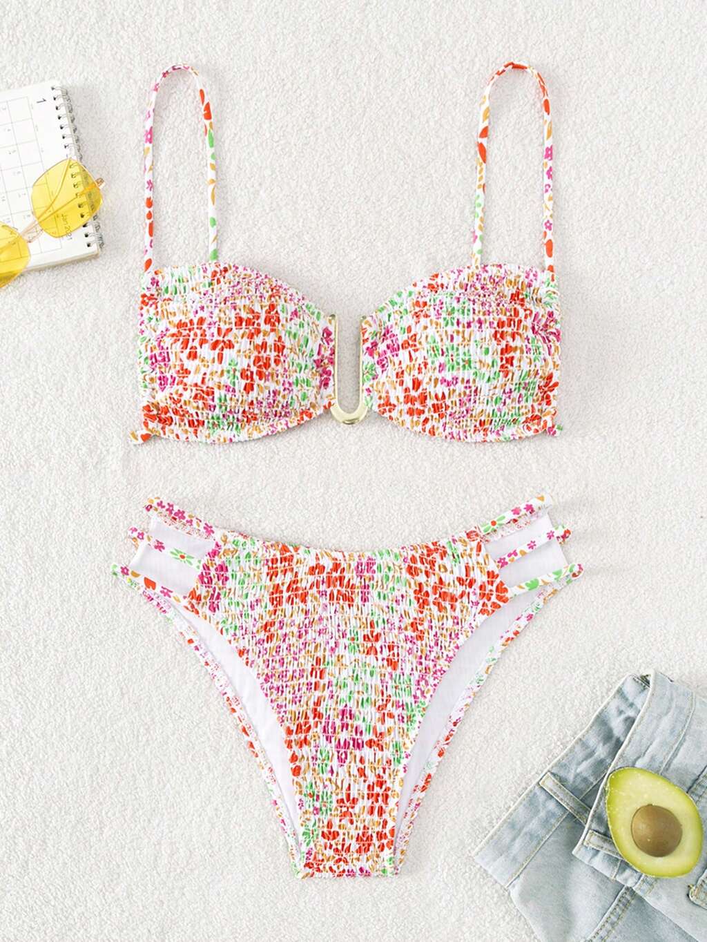 Conjunto de bikini de 2 piezas con bralette triangular y tanga con estampado floral diminuto para playa de verano