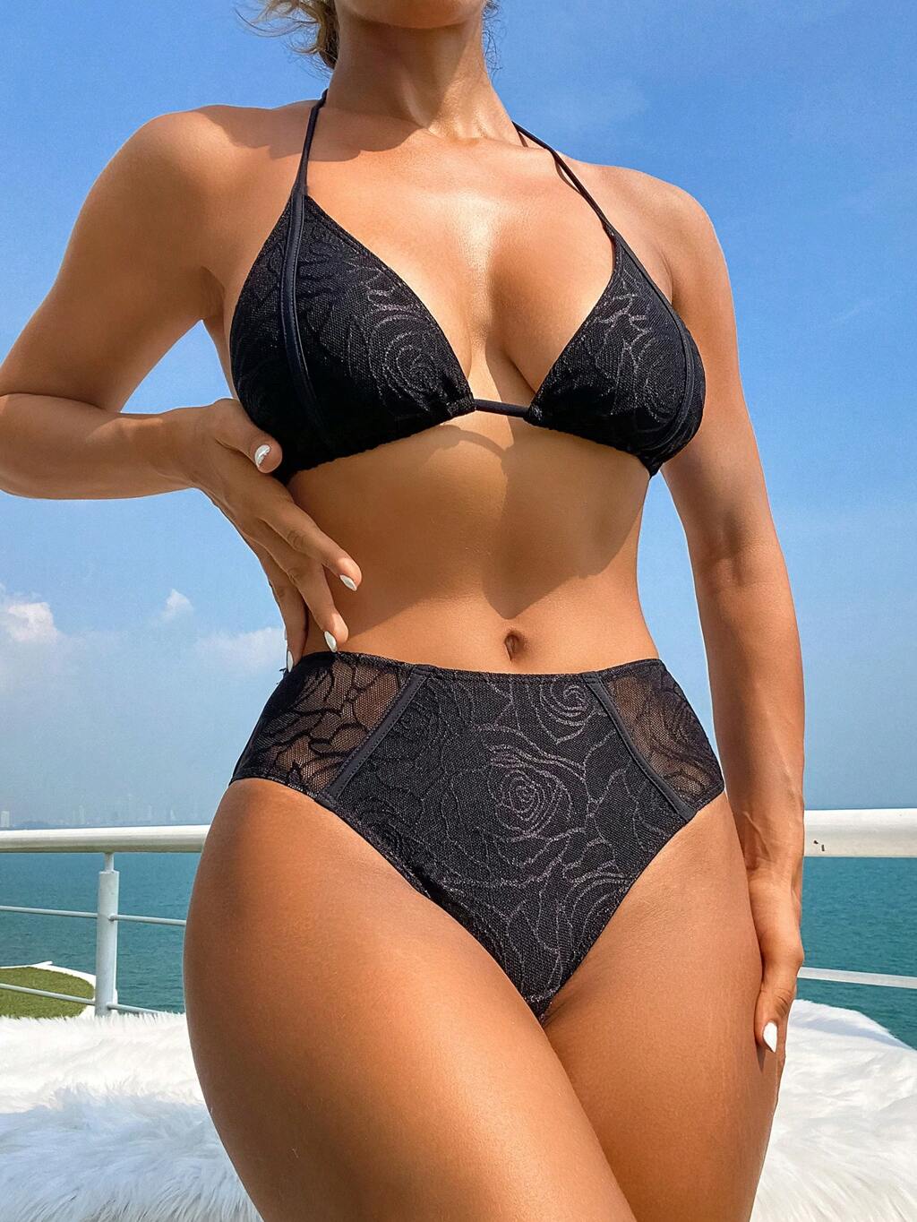 Maille épissage 3d fleur décoration Bikini ensemble été plage