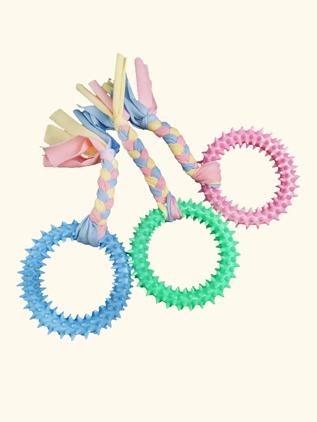 1 pièce Jouet à mâcher résistant aux morsures pour chat/chien en matériau TPR avec tissu coloré, couleurs assorties