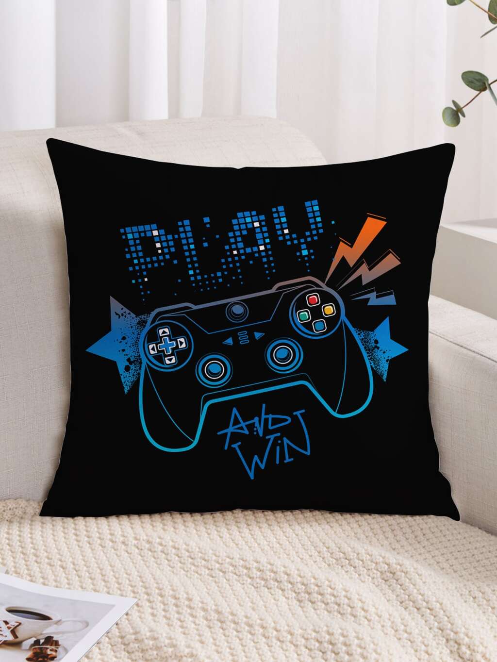 1 Pièce Taie D'oreiller De Motif De Manette De Jeu Sans Rembourrage, Couverture De Coussin Carrée Décorative En Tissu Tricoté Moderne Pour Lit, Canapé