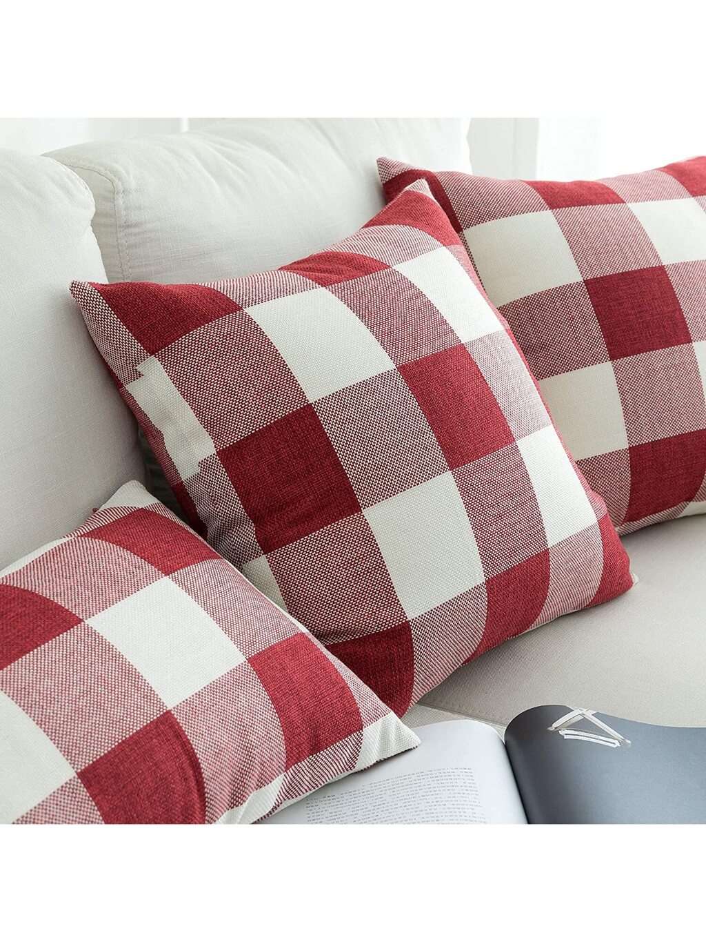 1 pièce Classique À Carreaux En Lin Coussin Décoratif Couverture , Automne & Hiver Salon Coussin De Canapé Coque