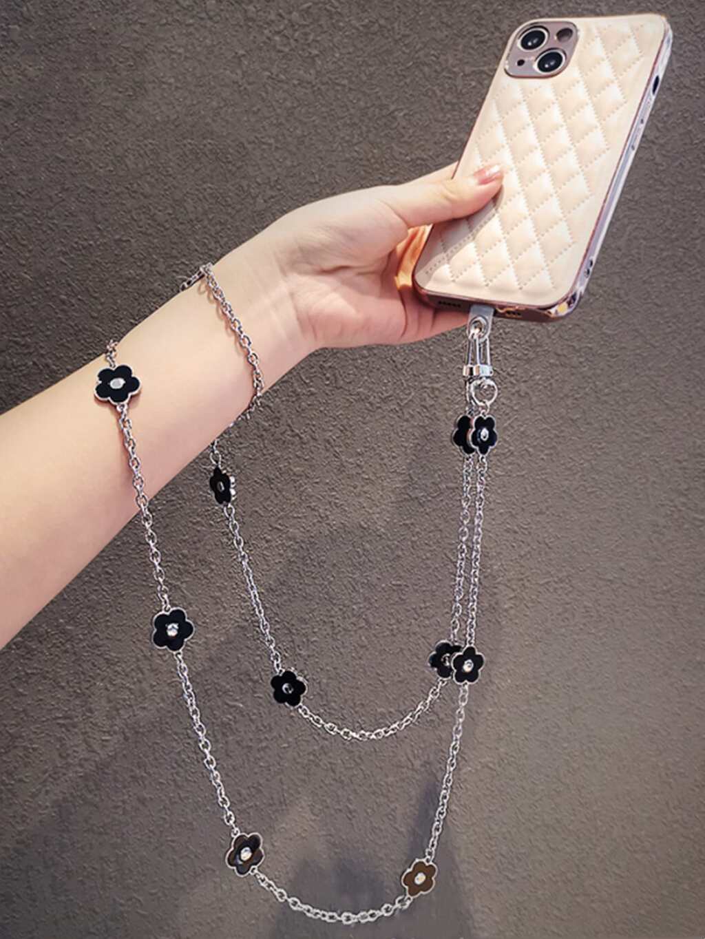 Chaîne de téléphone portable style fleur à gouttes d'huile + patchs transparents comme cadeau pour la mère, la famille, les amis, l'anniversaire, les fêtes