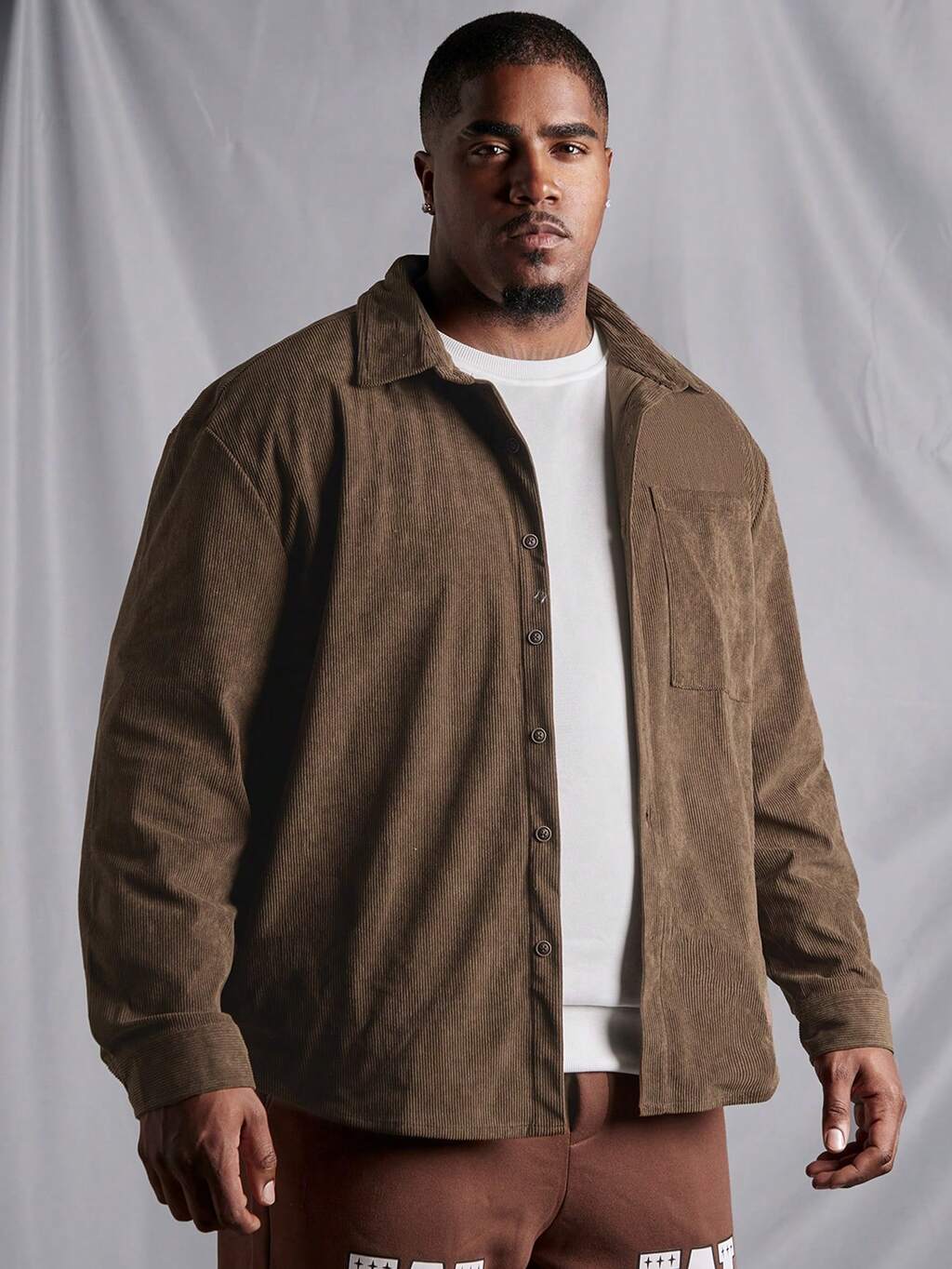 Camicia Giacca Sciolta A Bottoni In Tinta Unita A Taglie Forti Uomo