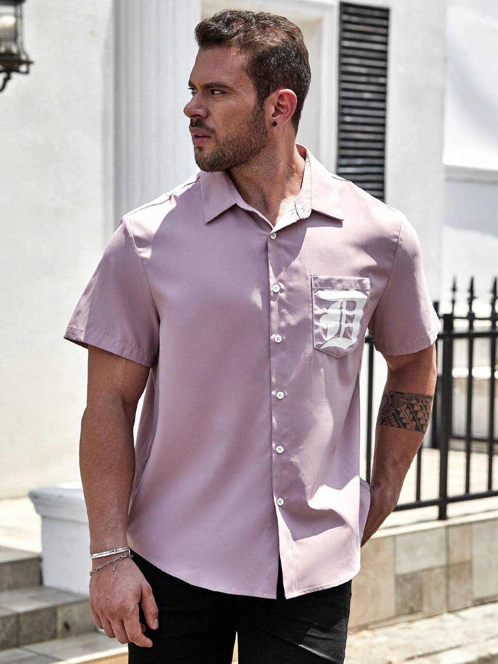 Taglie Forti Uomo Camicia con grafica lettera con tasca a toppa